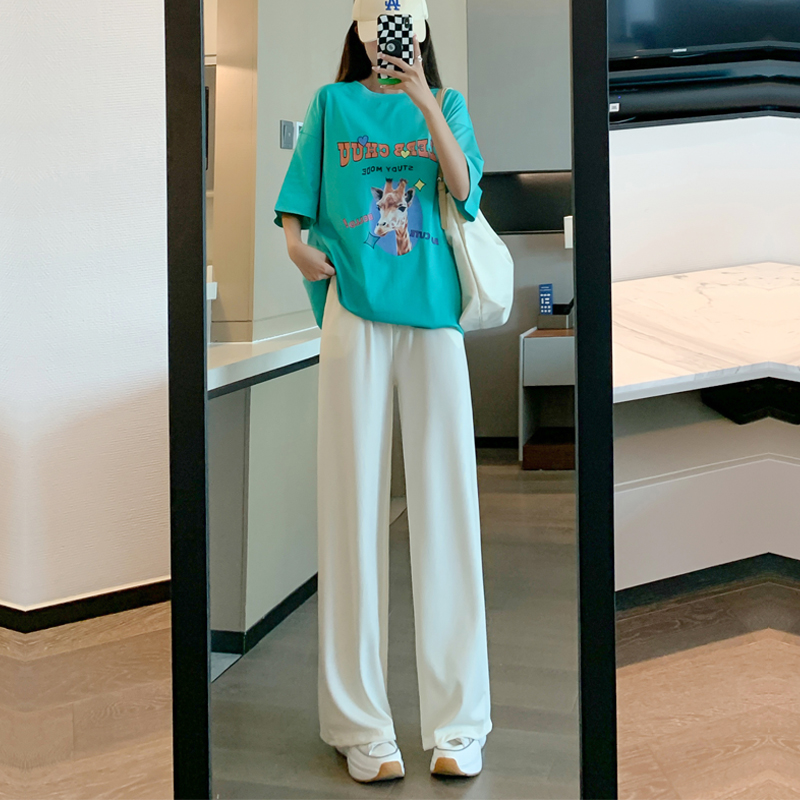 遮肉显瘦200斤大码女装胖mm夏季薄款冰丝垂感宽松休闲直筒阔腿裤3