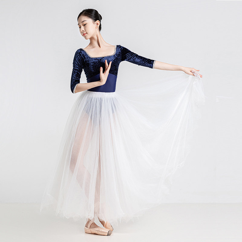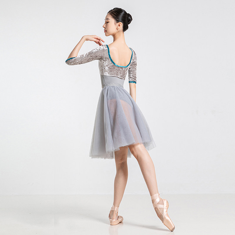 Sansha 三沙芭蕾舞服女 钻石绒七分袖练功服舞蹈服表演服连体服