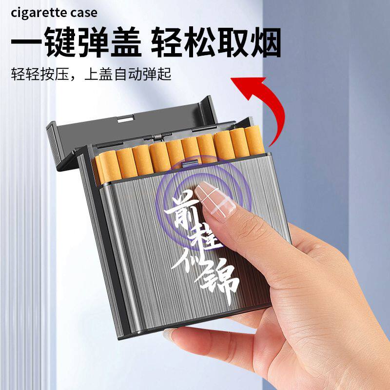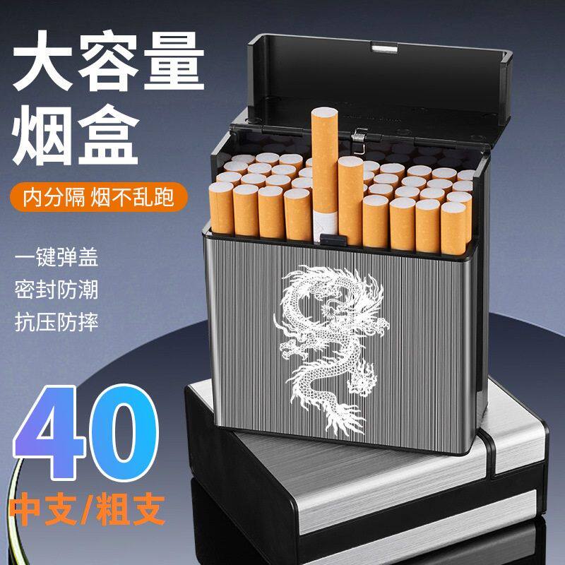 新款大容量40支装烟盒便携式粗支中支6.5cm烟卷保护盒子自动弹盖