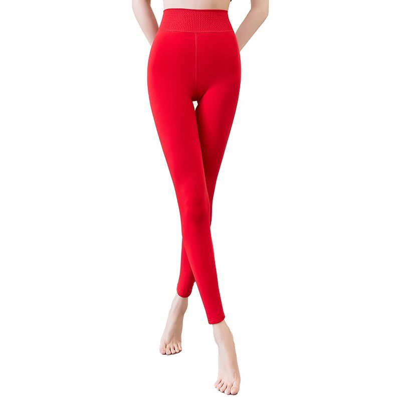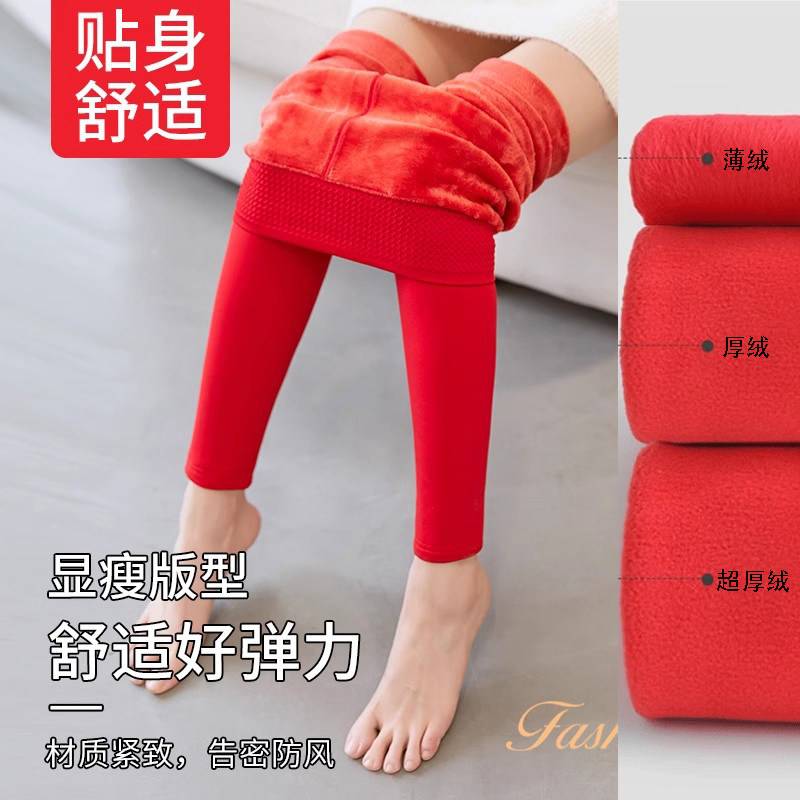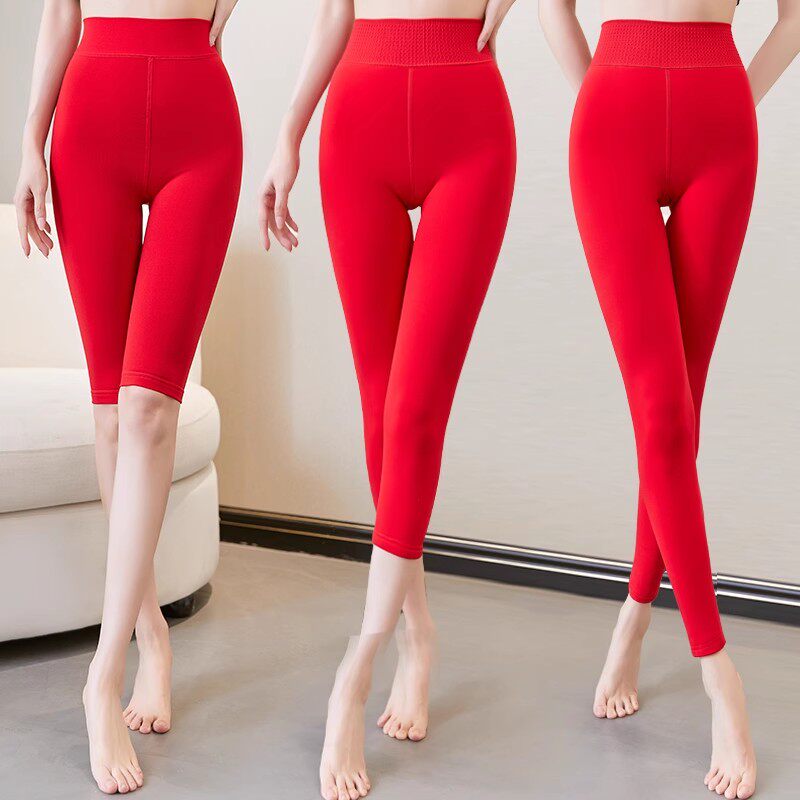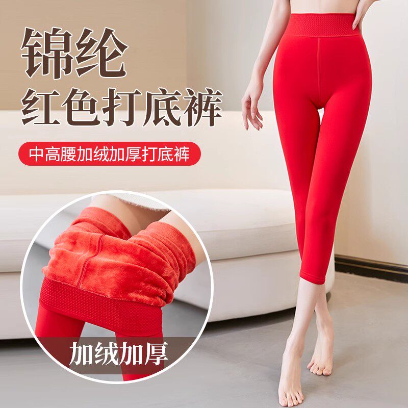 冬特厚外穿加绒500克大红色结婚小个子八分打底裤靴裤保暖裤9分女