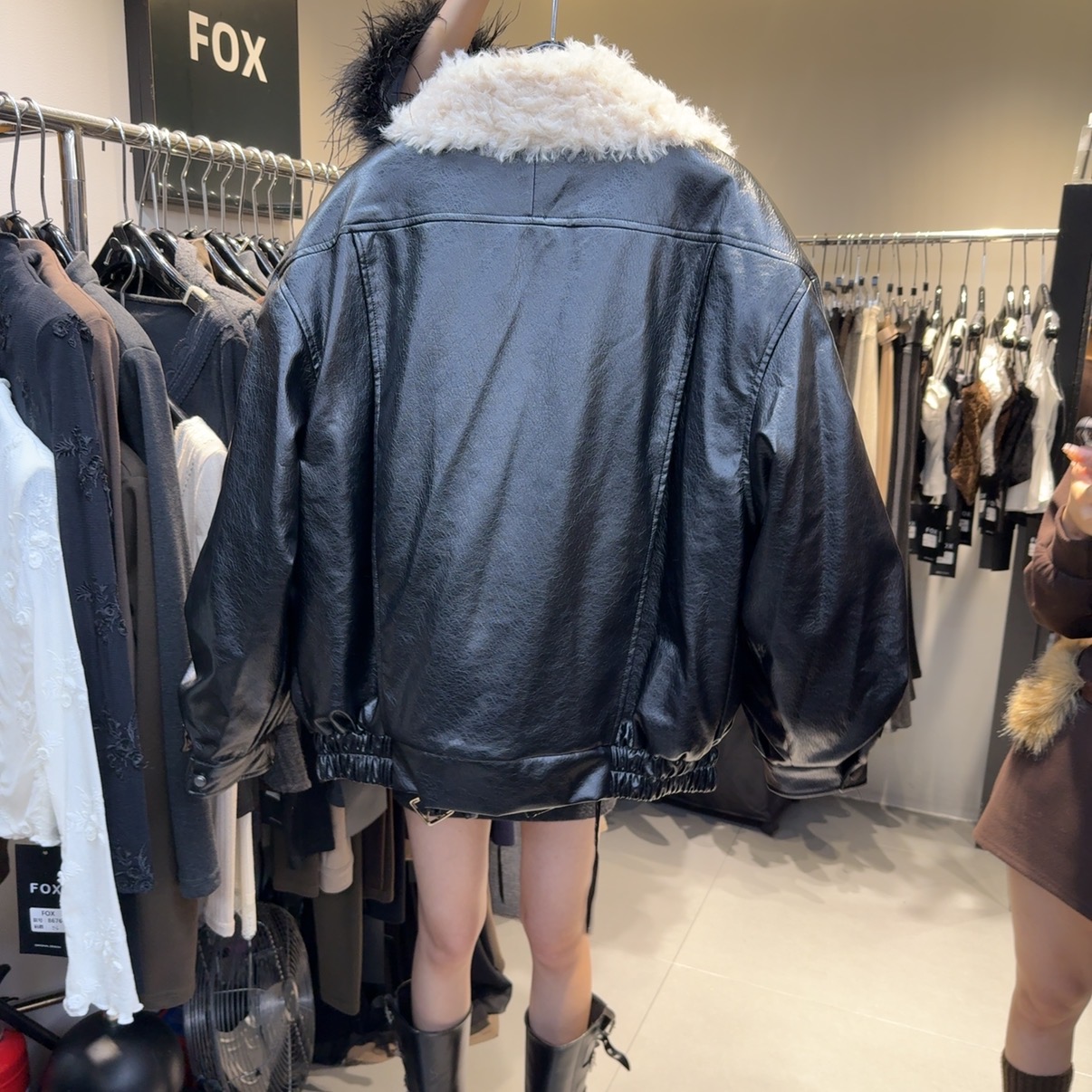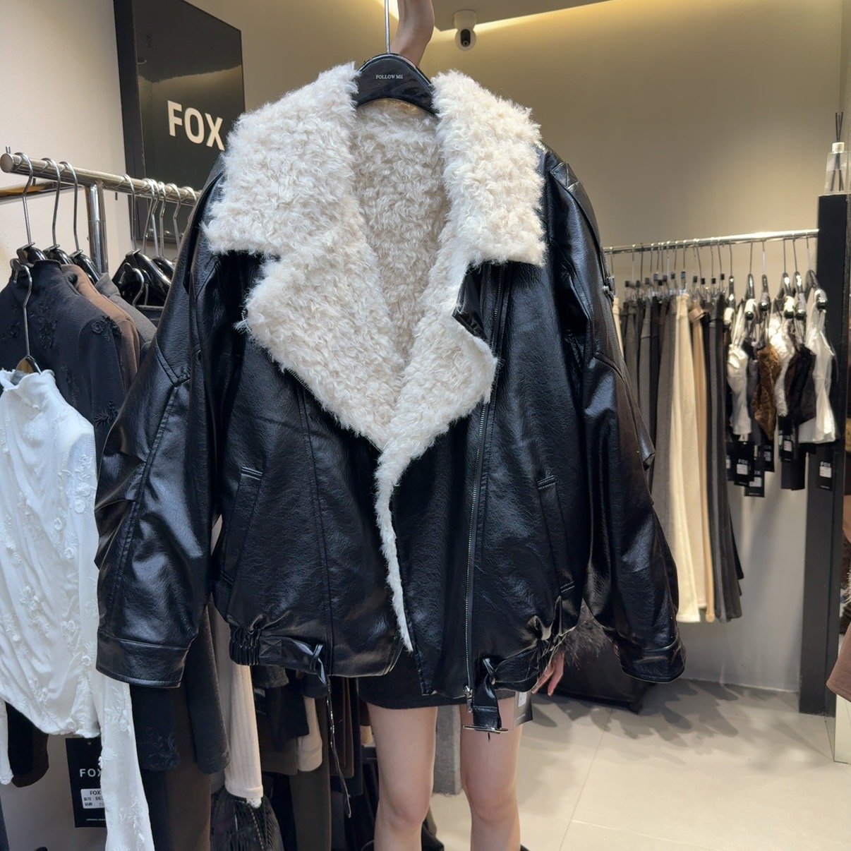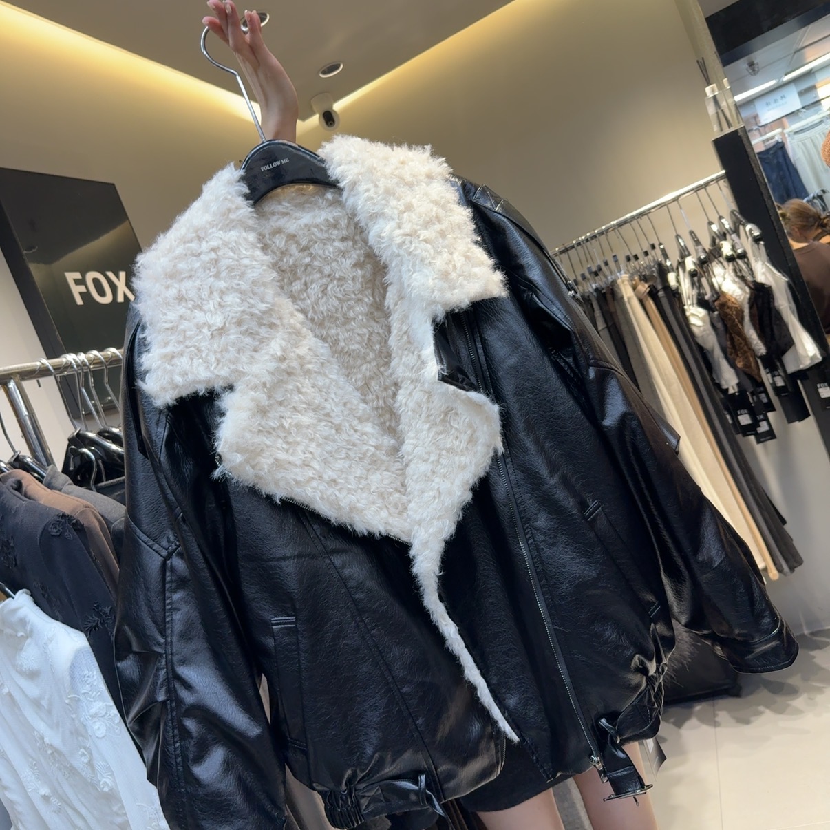 韩版时尚翻领皮毛一体皮衣外套