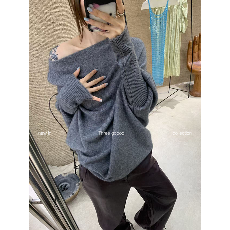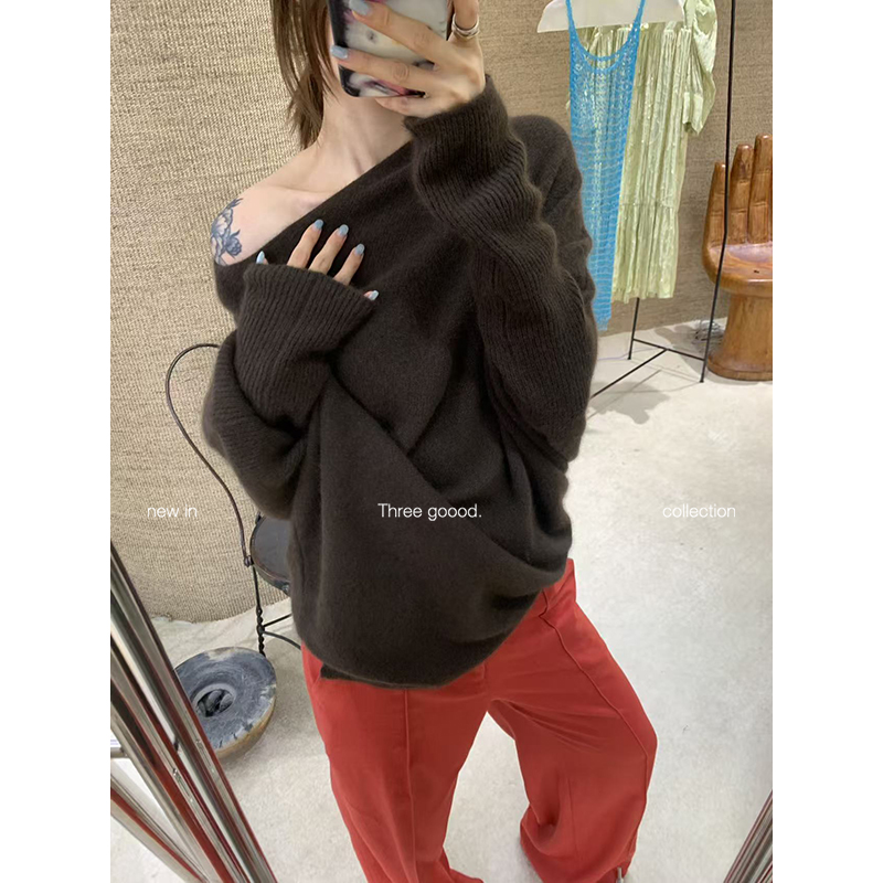 THREE GOOOD殷三吉 羊绒羊毛浣熊不规则蝙蝠袖套头衫上衣