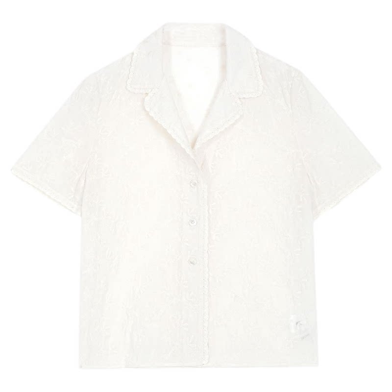 CAN女装新款重工勾花蕾丝边衬衫