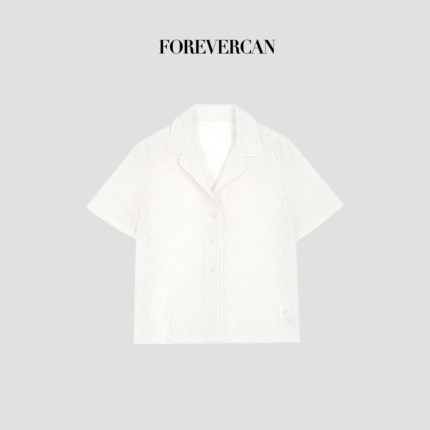 Forevercan女装2025新款"白月织梦"法式蕾丝花边重工钩花翻领衬衫