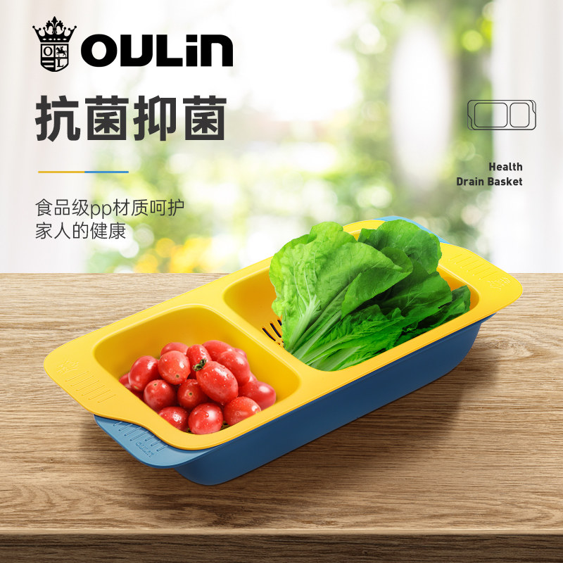 欧琳沥水篮 厨房抗菌沥水架洗菜盆 水果蔬菜清洗篮 可挂式沥水篮
