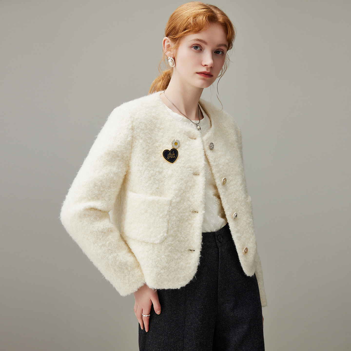 dfvc名媛小香风羊毛短款毛呢外套女2025年冬季新款圆领小个子上衣