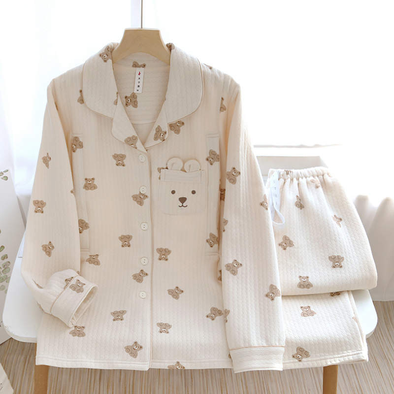 秋冬季纯棉月子服夹棉加厚时尚保暖孕妇睡衣产后长袖哺乳期喂奶衣