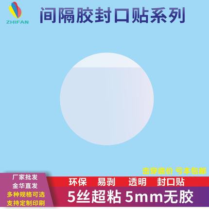 易撕透明圆形封口贴超粘不干胶标签间隔胶带耳朵无胶印刷LOGO