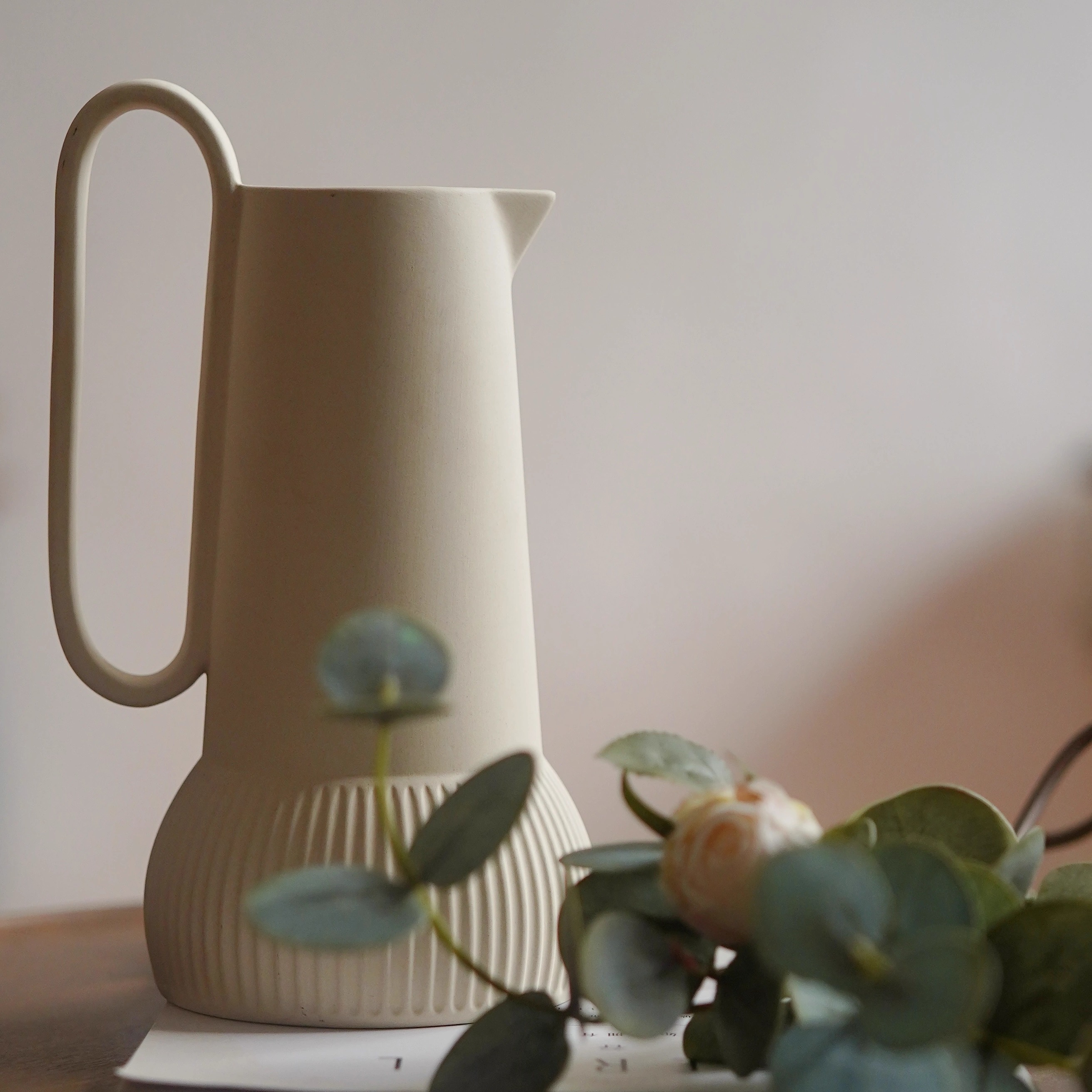 北欧陶瓷单耳花瓶奶油色现代简约客厅茶几干花插花桌面花器摆件