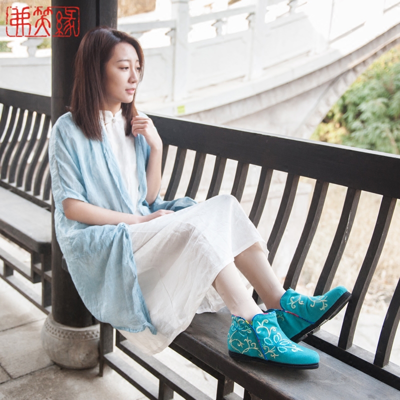 北京老布鞋女春2021新款平跟绣花鞋女内增高千层底民族风女鞋藤香