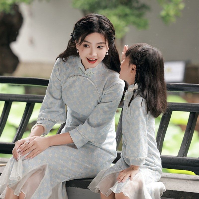 亲子旗袍母女装儿童唐装连衣裙女童旗袍礼服洋气中国风鱼尾裙气质
