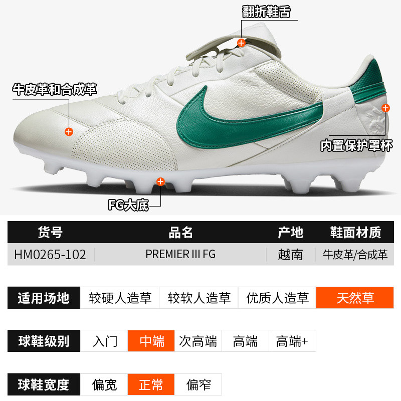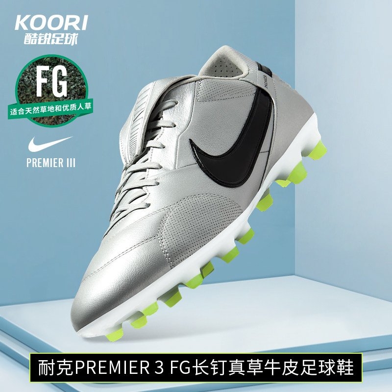 酷锐足球耐克Premier 3 FG长钉真草牛皮训练足球鞋男HM0265
