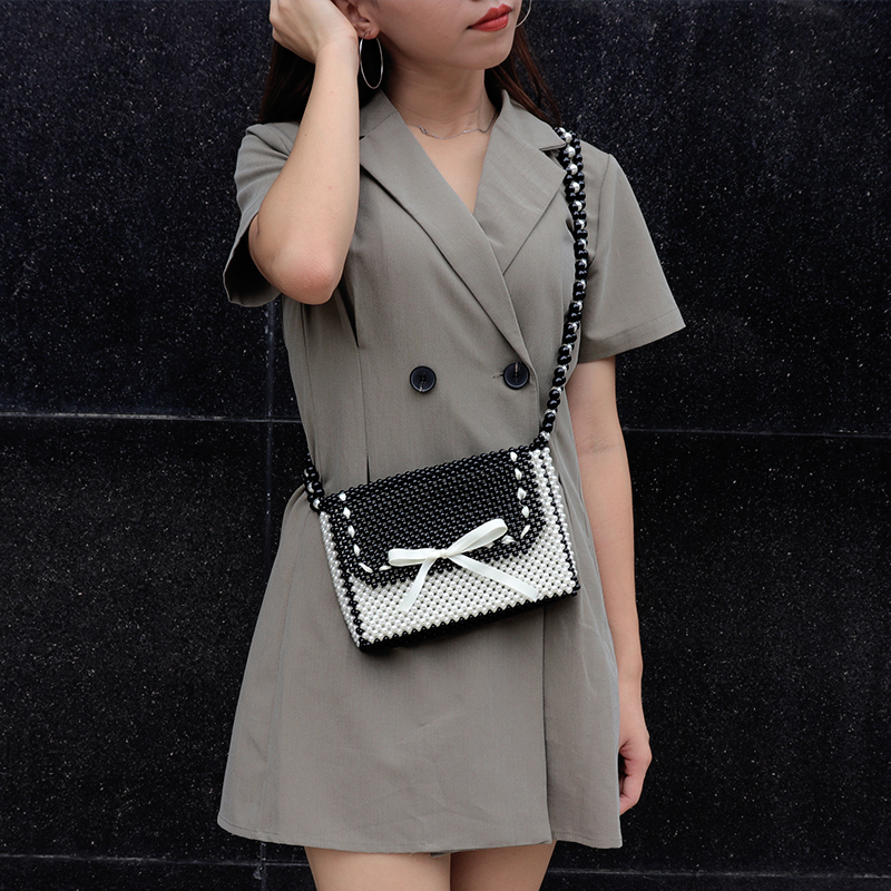 手工串珠diy制作小众蝴蝶结包斜挎包材料包散珠子编织饰品创意包