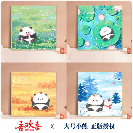 吾欢喜熊猫花花四季满钻钻石画