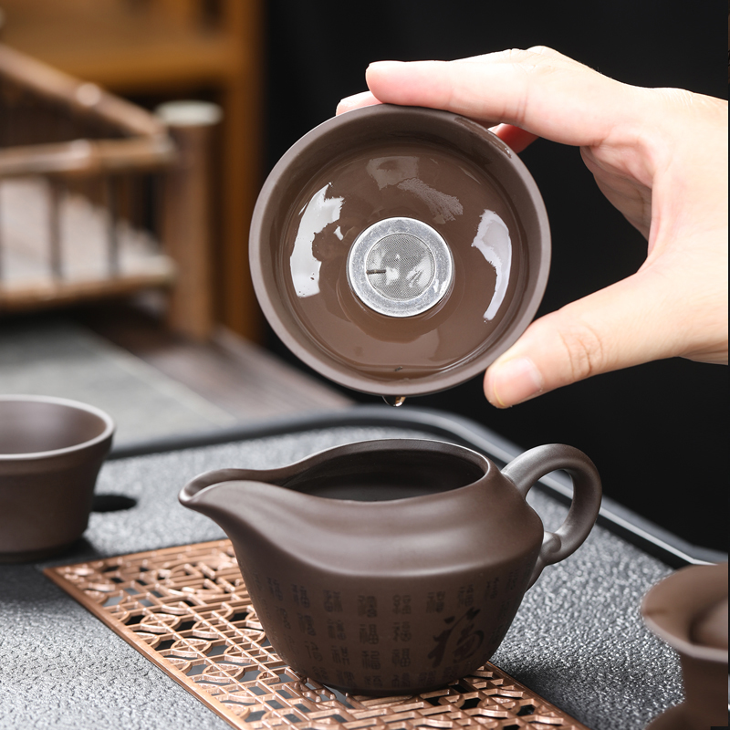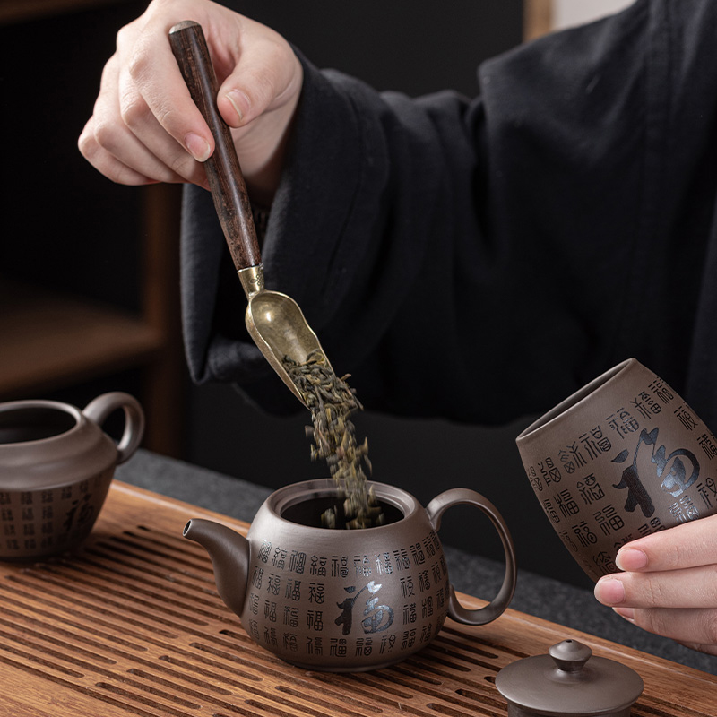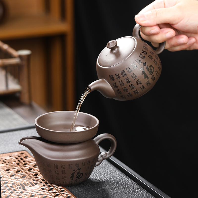 原矿紫砂茶具套装老泥万福紫砂禅意泡茶壶实木盘整套茶器家用中式
