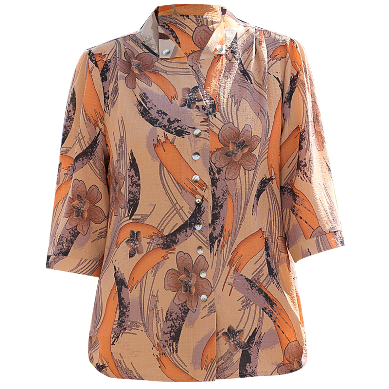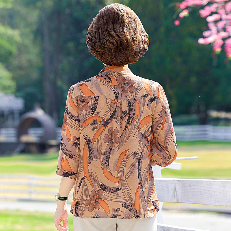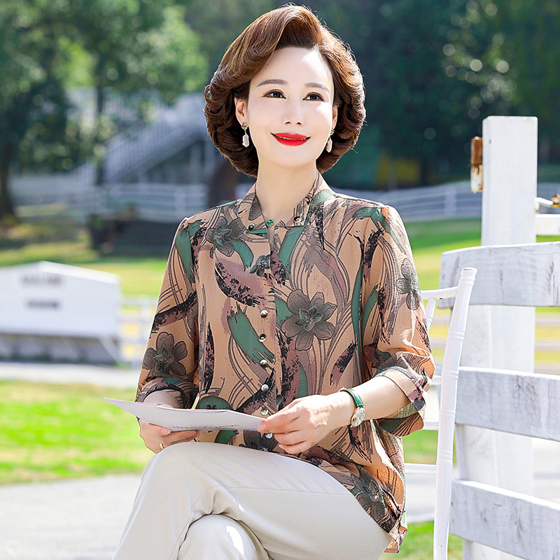 妈妈夏装短袖雪纺上衣套装中老年人女春秋装中袖衬衫洋气两件套