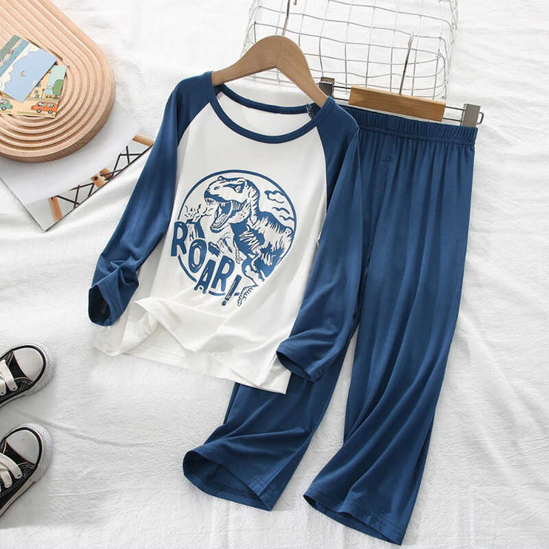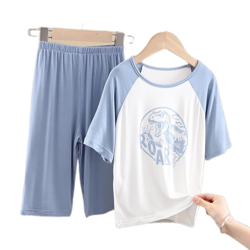 新款儿童睡衣套装春夏季薄款男女童冰丝长七分袖中小童家居空调服