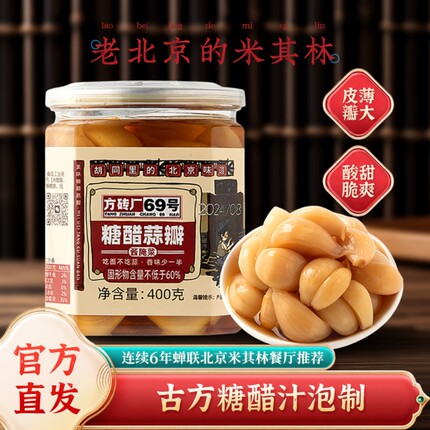 方砖厂69号翡翠腊八蒜北京特产绿蒜糖蒜下饭菜酱腌菜正宗糖醋蒜
