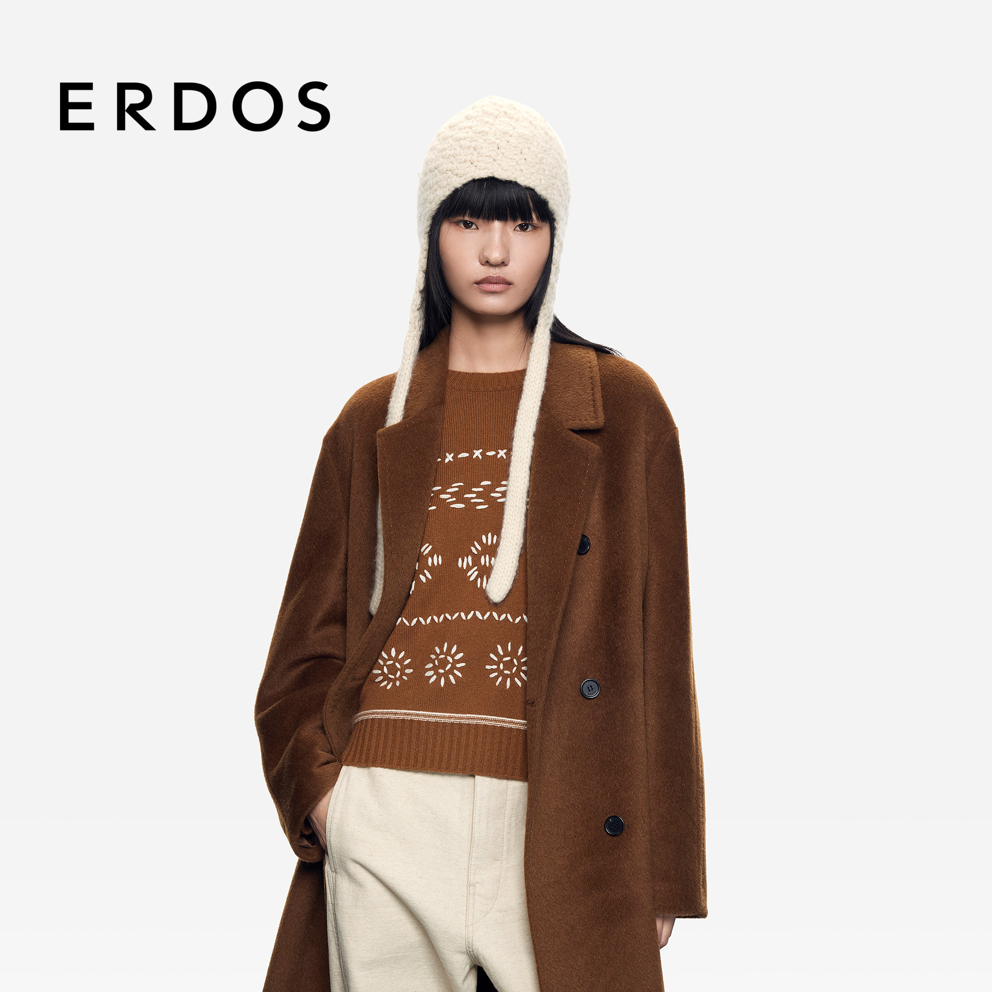 【辛芷蕾同款】ERDOS 女士护耳针织帽子25秋冬新品手钩纹理飞行帽