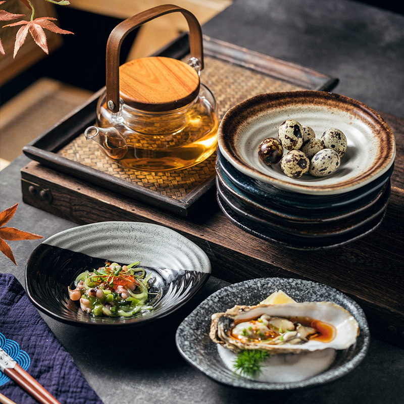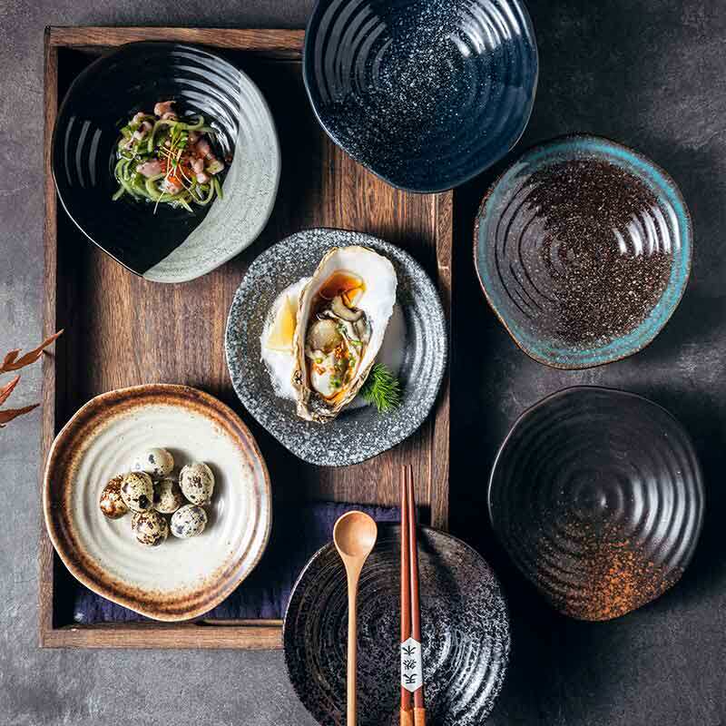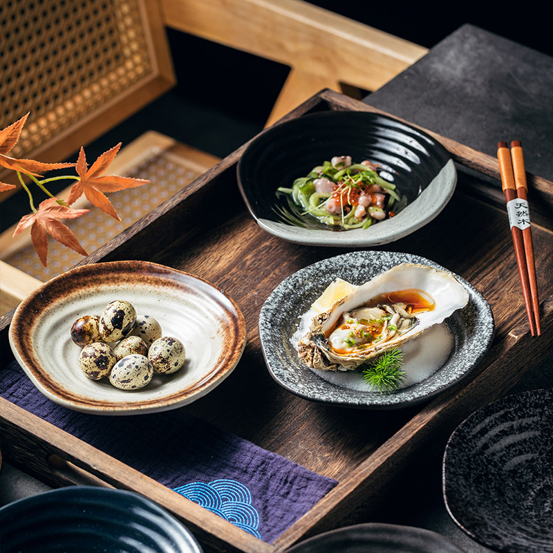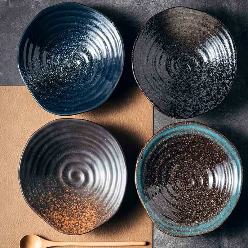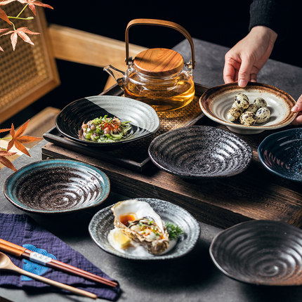 不规则高脚螺纹盘创意餐具日式陶瓷盘子汤盘水果盘装菜盘子点心盘