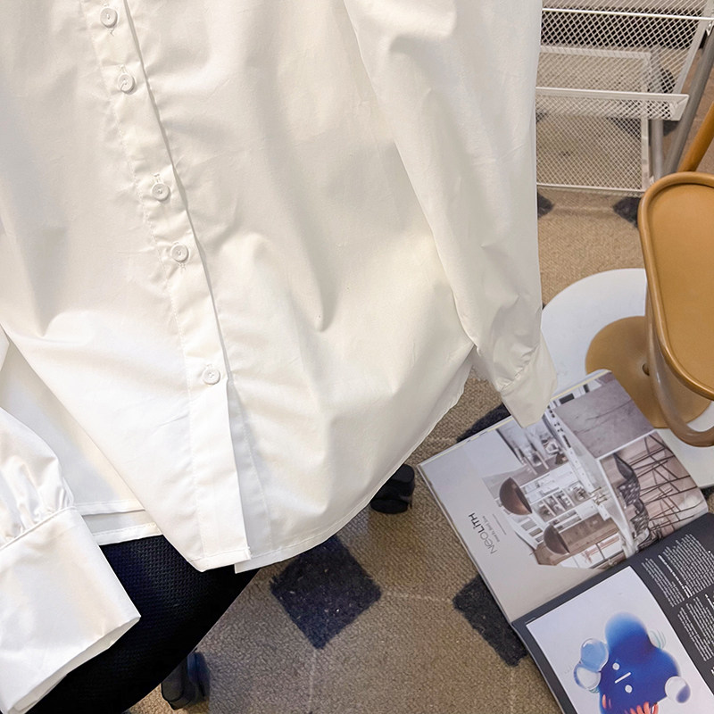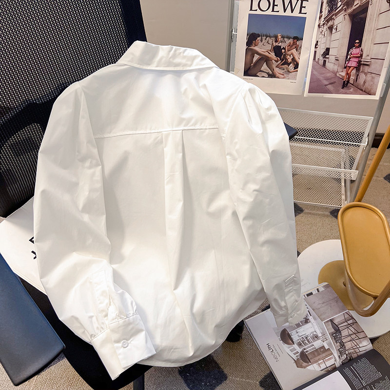 小C家 高级感白色长袖衬衫女款2025新款秋季宽松叠穿休闲百搭衬衣