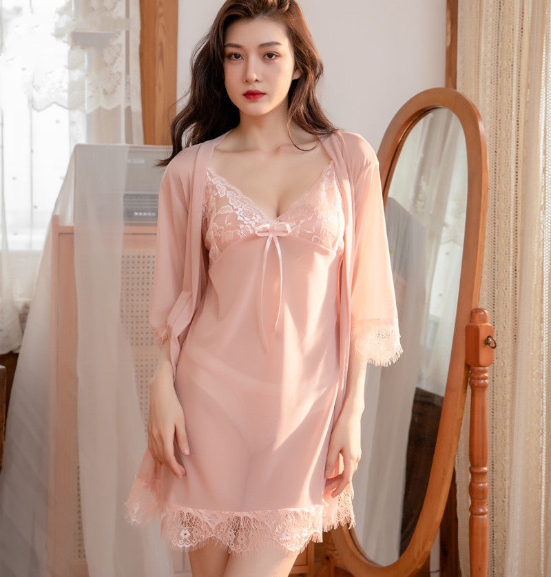 【三件套】性感蕾丝纯欲风女夏甜美吊带睡衣袍套装法式慵懒风睡裙