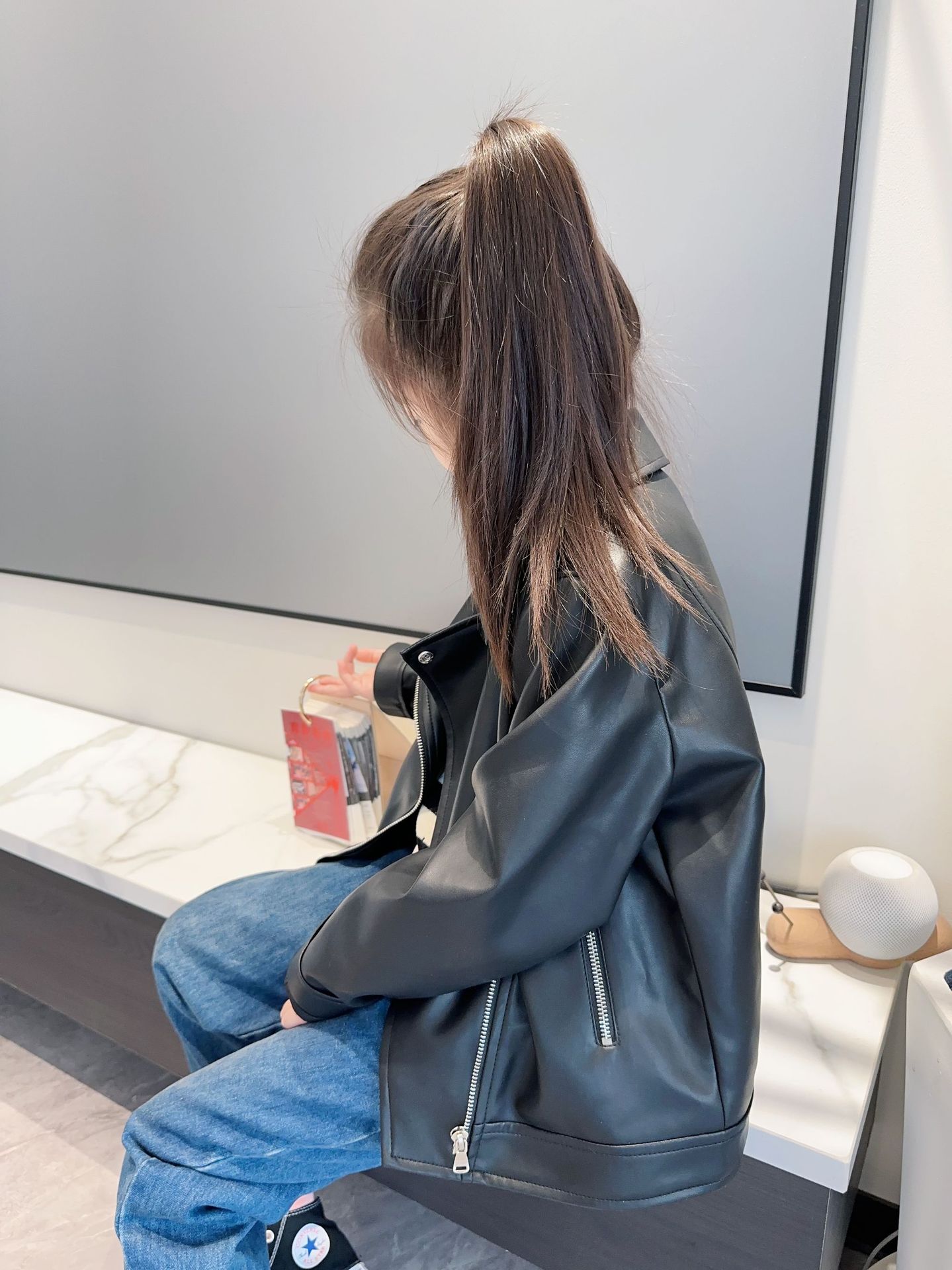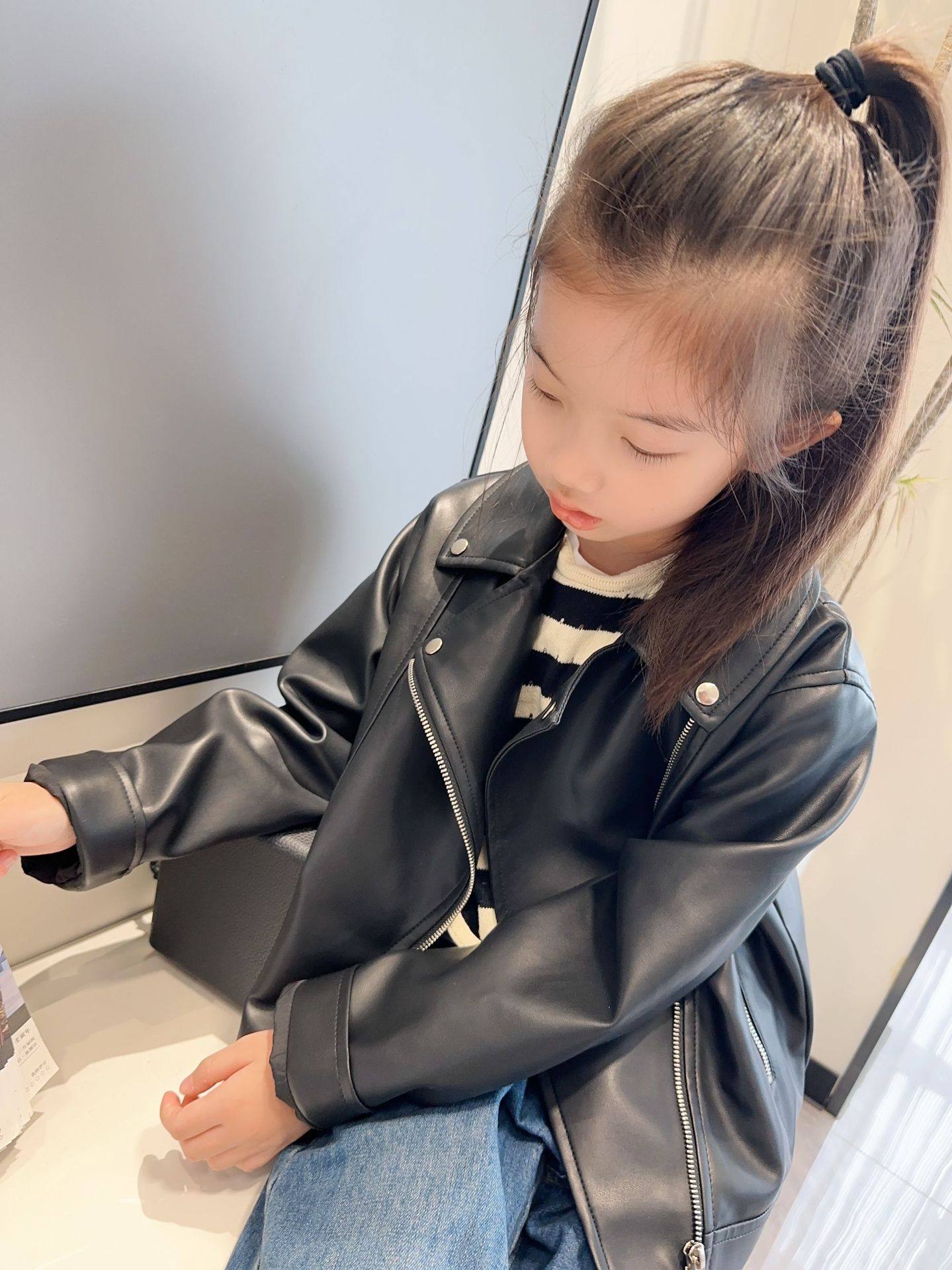 韩版儿童机车风皮衣春秋2025新款男童皮夹克洋气女童皮衣外套潮