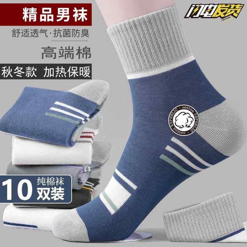 男士袜子纯棉防臭吸汗透气秋冬季中筒袜篮球全棉袜加厚运动男袜子