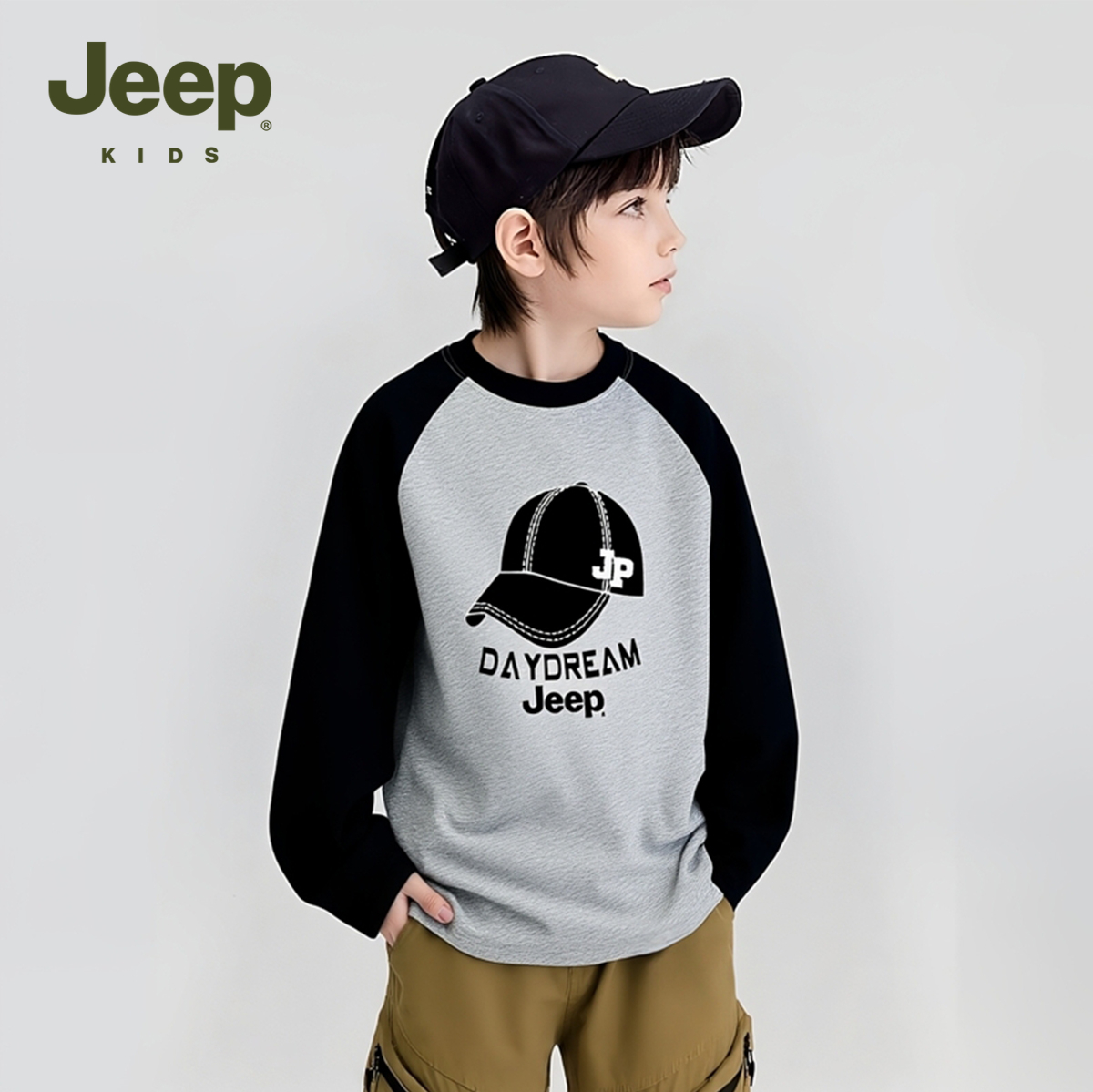 JEEP/吉普男童长袖T恤2025新款儿童圆领上衣拼色中大童秋冬打底衫