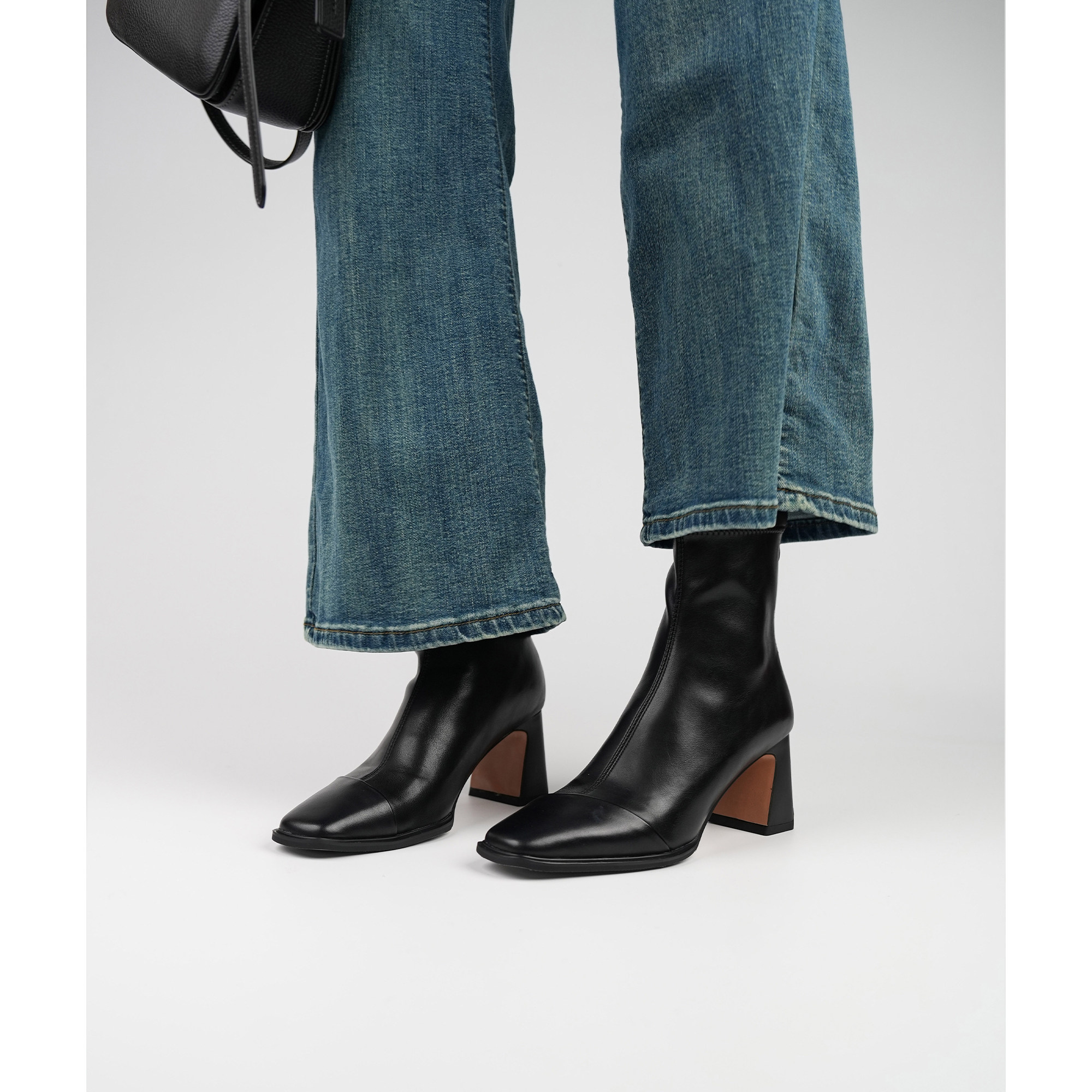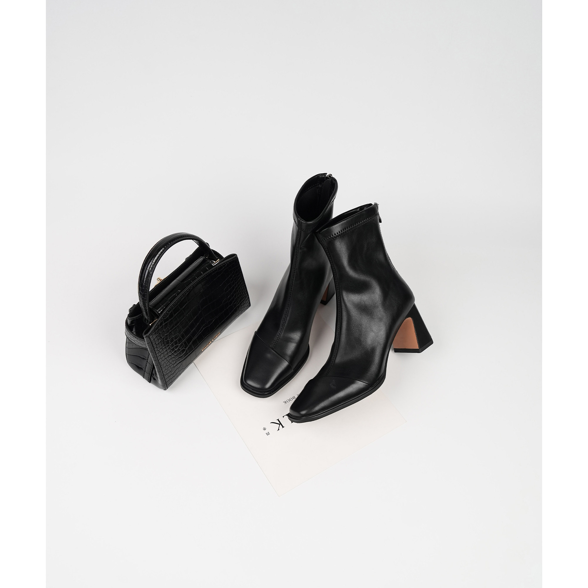 Fermina 通勤风方头弹力短靴女粗跟百搭显瘦高跟女靴秋新款瘦瘦靴