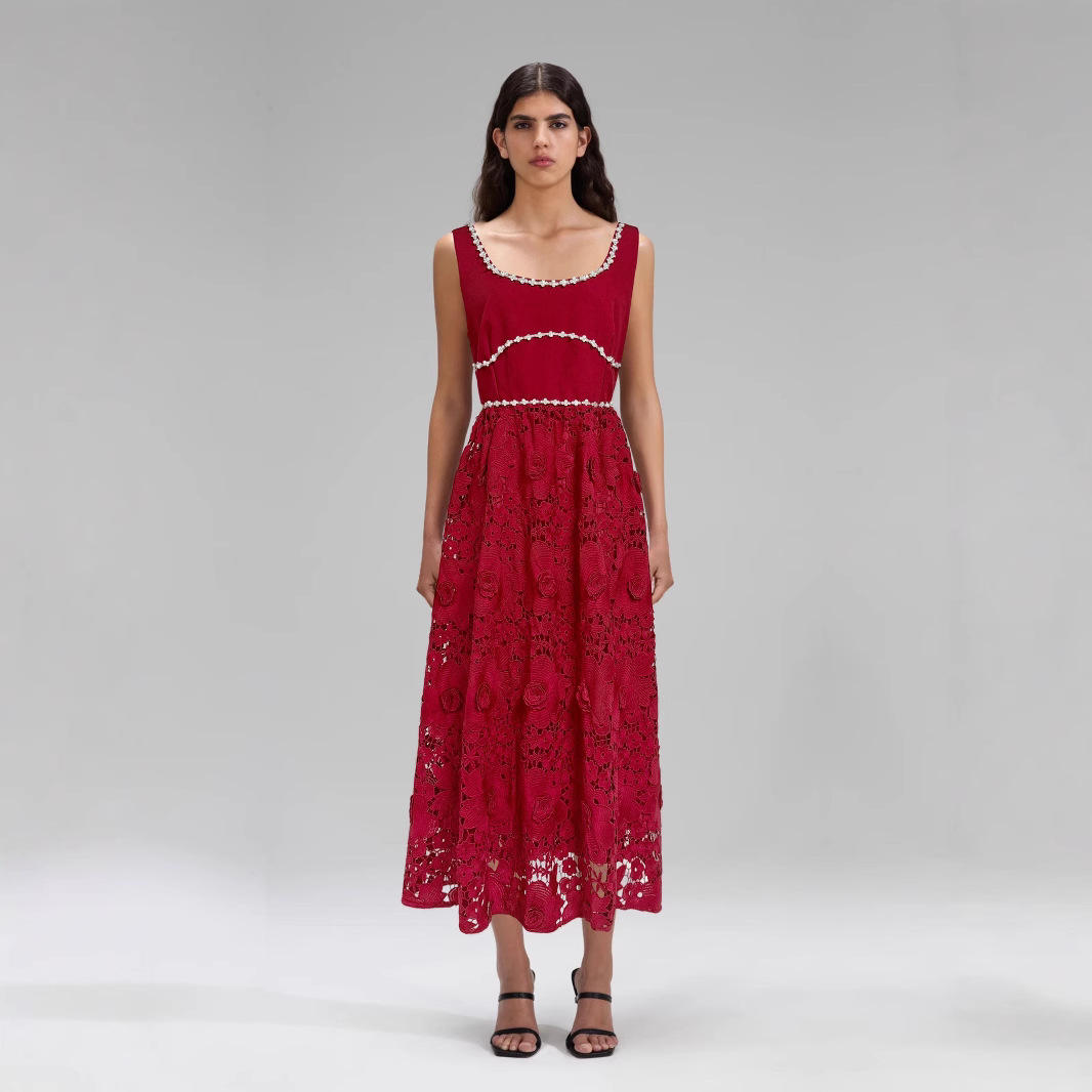 简约时尚镂空大摆背心裙2025夏季链条无袖高级感拼接连衣裙女高腰