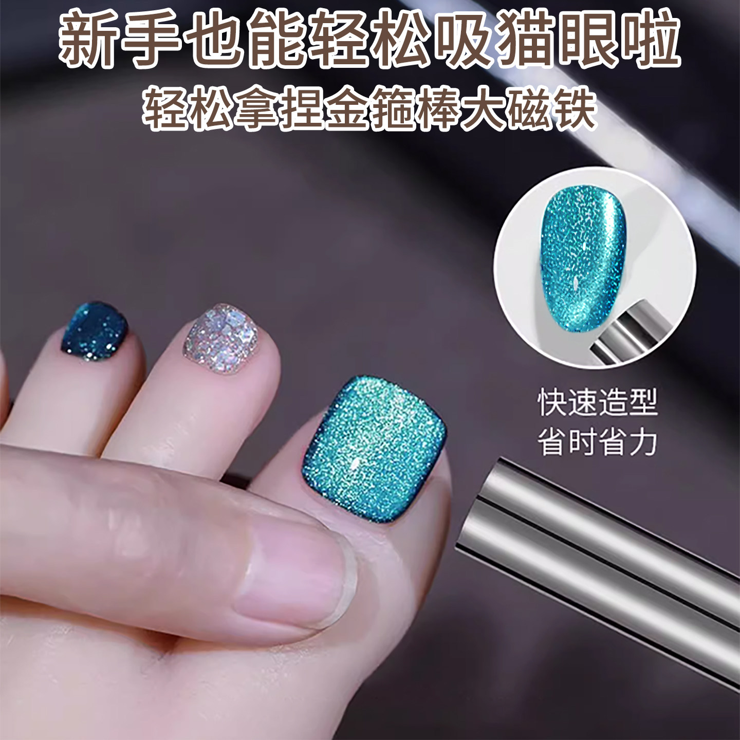 美甲强力大号金箍棒猫眼磁铁双头