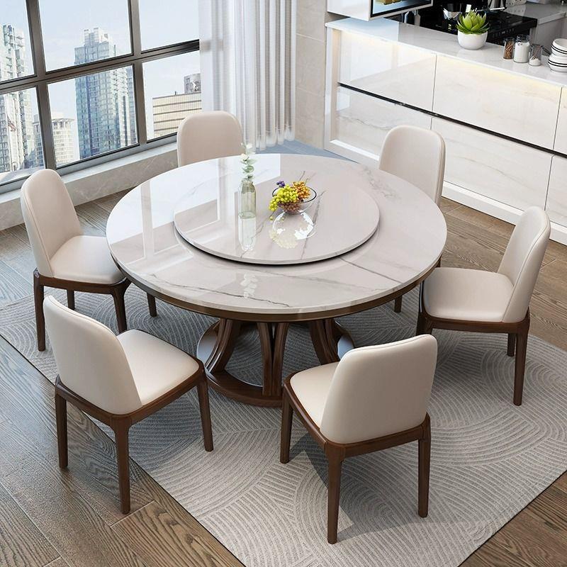 高端岩板餐桌椅组合现代简约小户型实木圆桌轻奢圆形带转盘家用桌