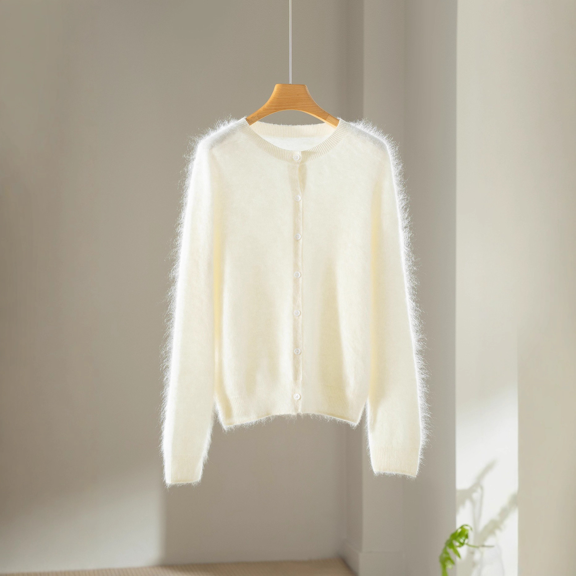 秋冬新款 拉绒圆领开衫100%纯山羊绒针织短款外套打底衫毛衣女