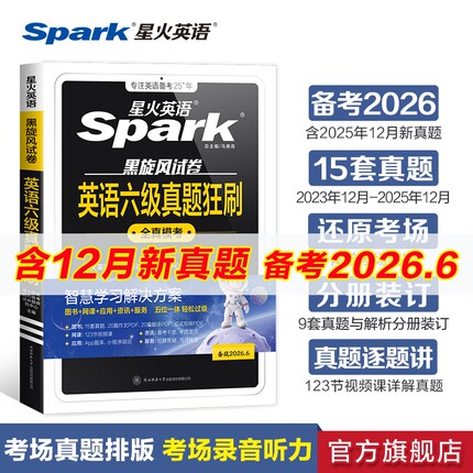 星火英语六级备考2026年6月考试真题+词汇必备六级真题背单词学习资料大学英语cet6四六级词汇乱序版英语4级刷题卷狂刷试题全真6