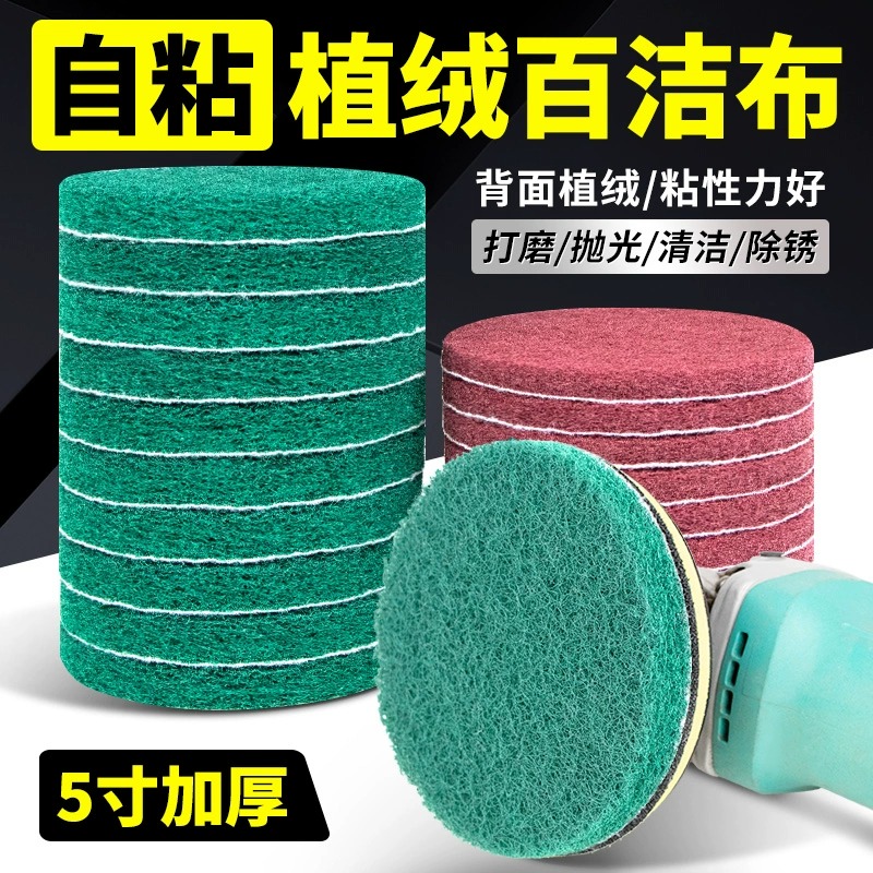 圆形尼龙背绒片角磨机用除锈拉绒片工业级植绒百洁布清洁拉丝5寸