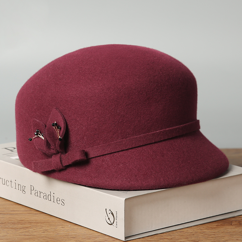 韩版秋冬羊毛呢骑士帽优雅时尚蝴蝶结鸭舌贝雷帽女英伦百搭小礼帽