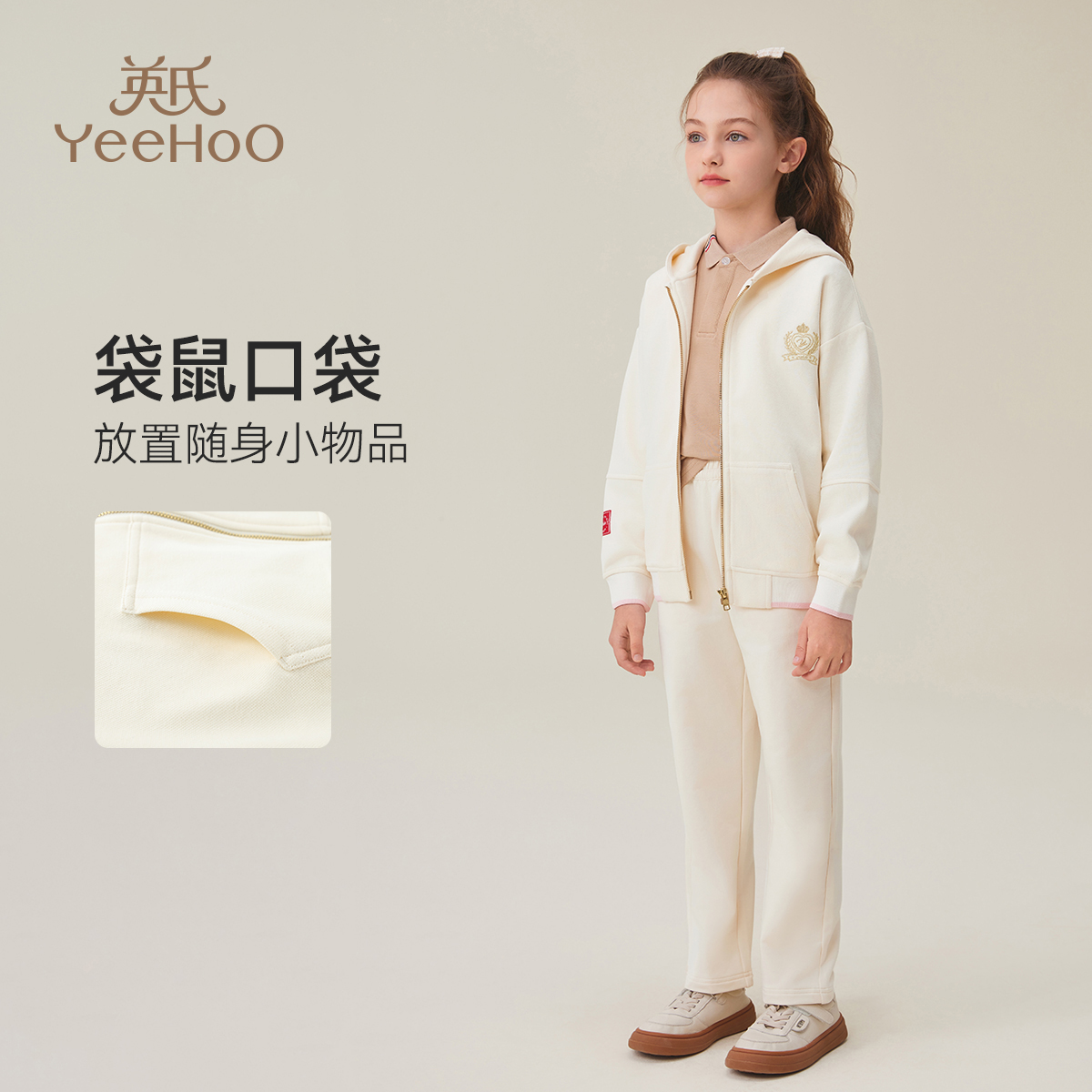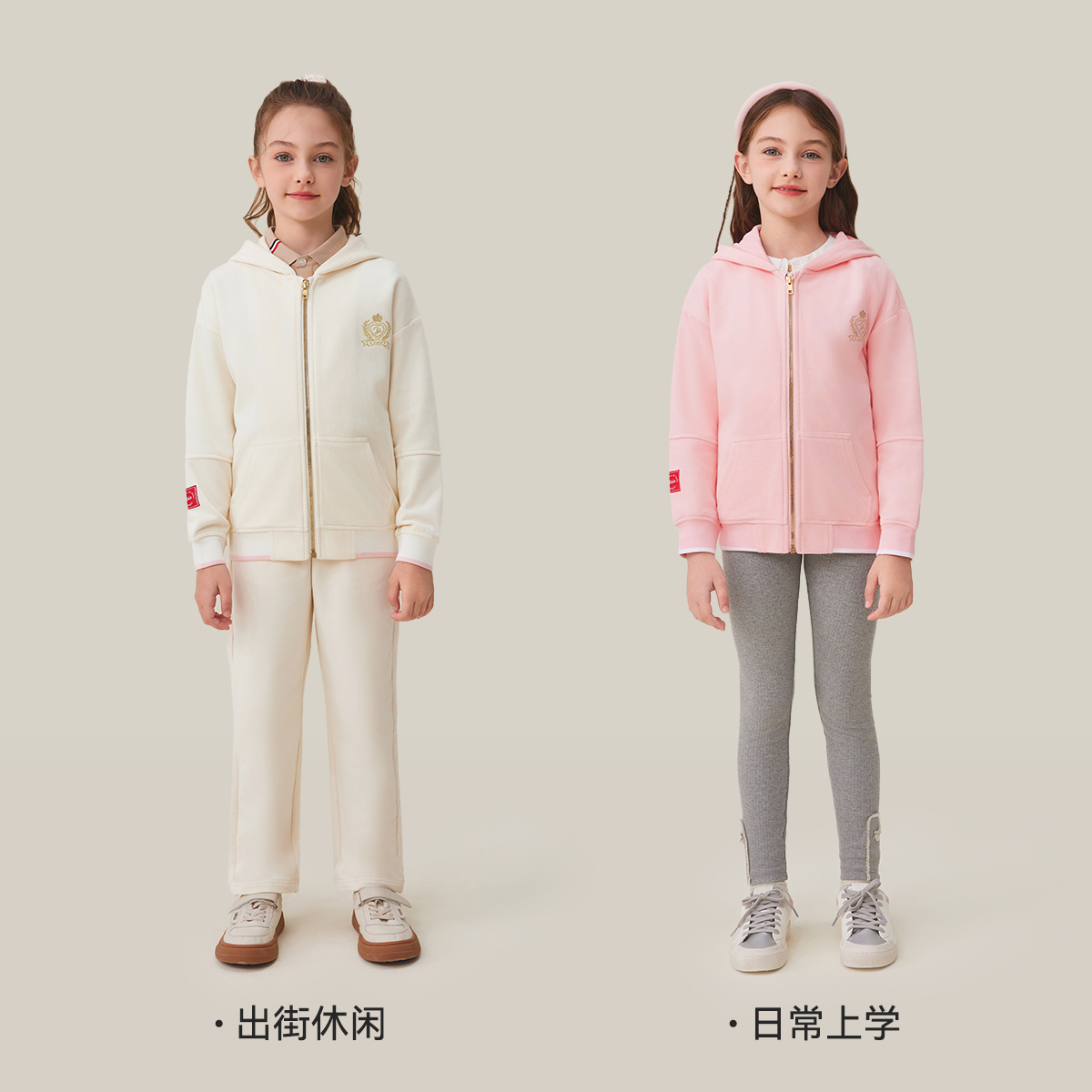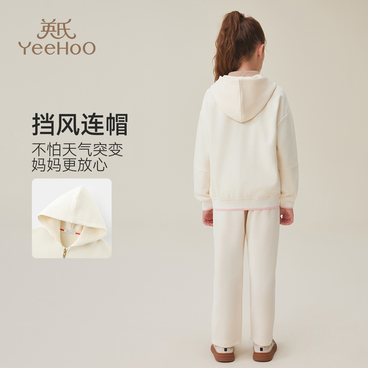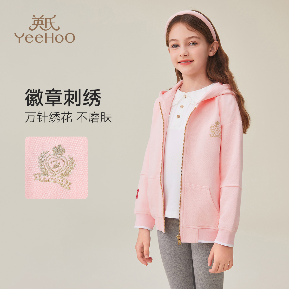 英氏童装女童外套秋季2025新款洋气大童运动休闲儿童连帽学院上衣