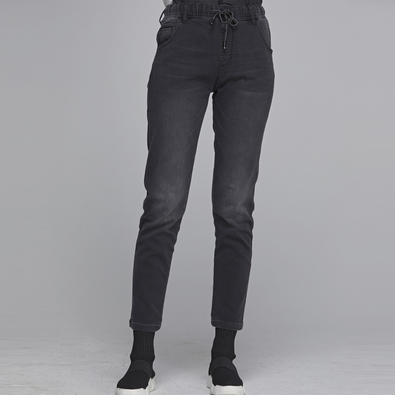 sdeer圣迪奥春秋女装时尚休闲松紧系带小脚牛仔通勤长裤S20180823