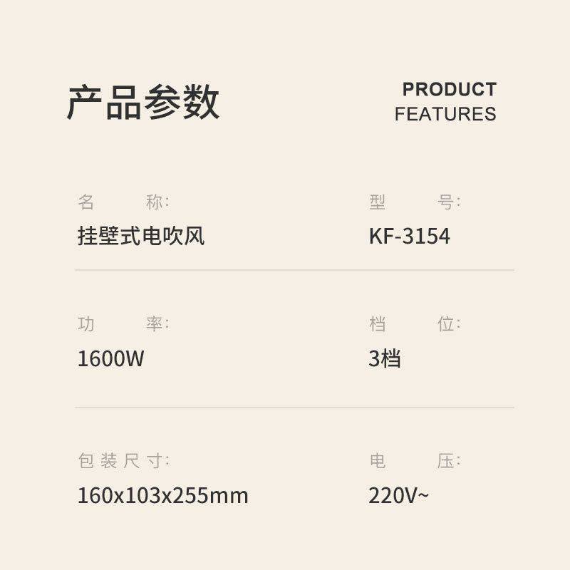 康夫大风速干挂壁式吹风机大功率1600w酒店电吹风机浴室家用