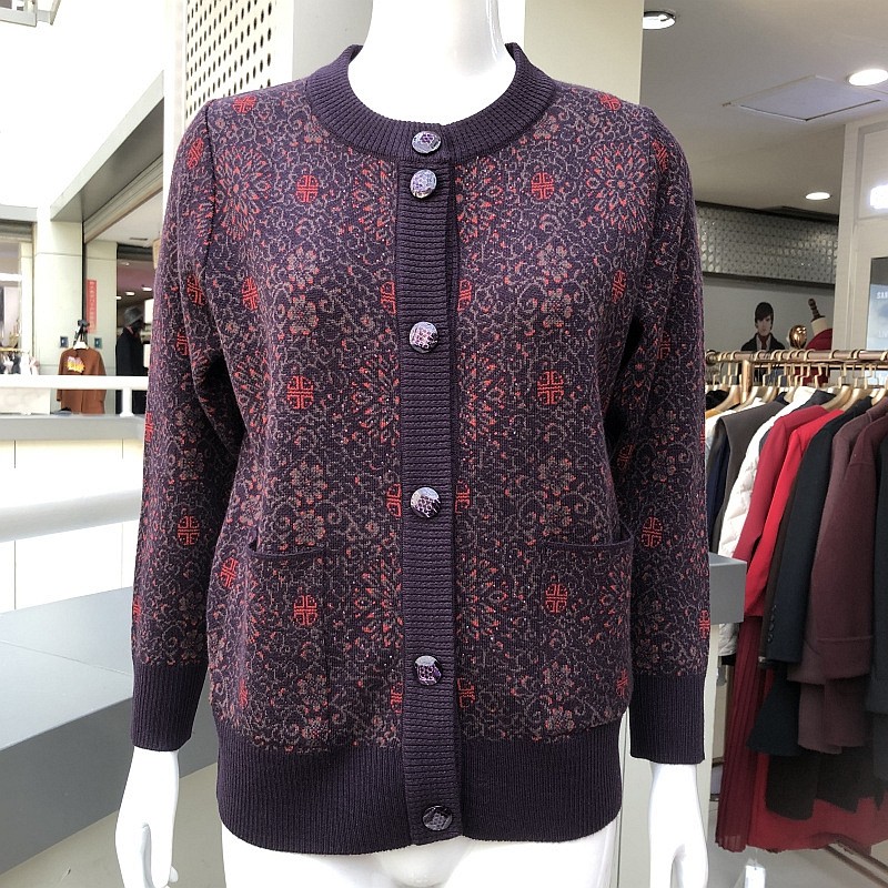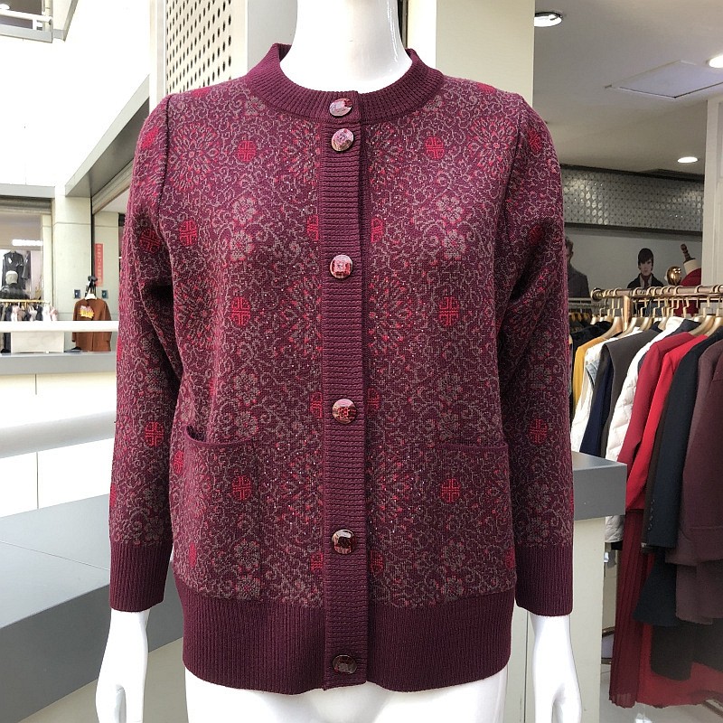 香诗菲853 中老年人针织衫外套女春季新款妈妈短款立领毛衣毛衫