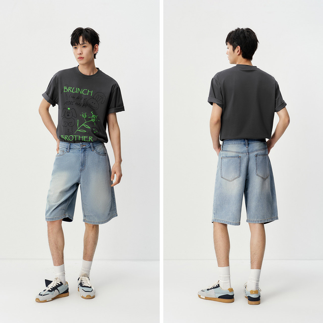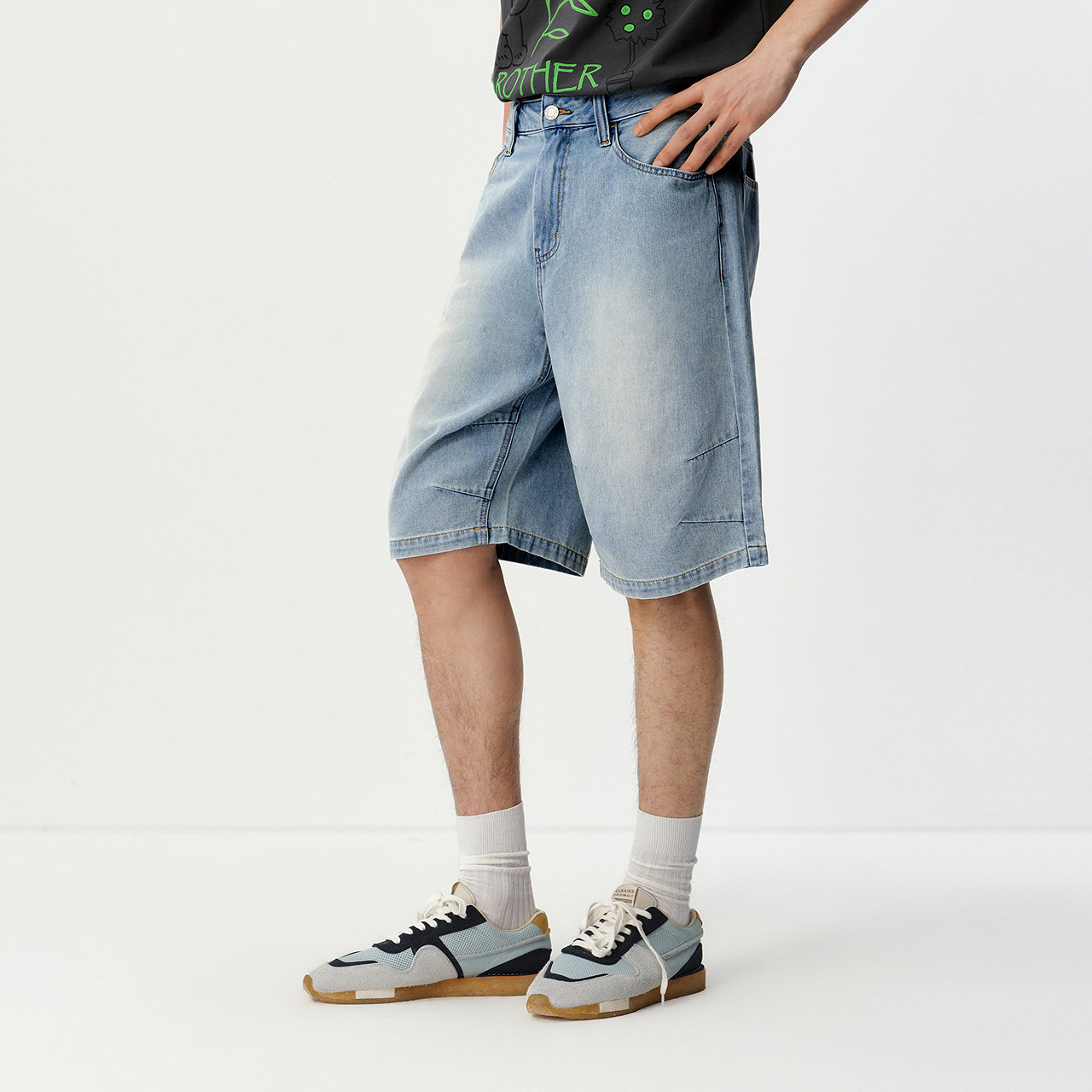 森马轻薄凉感宽松直筒牛仔短裤男