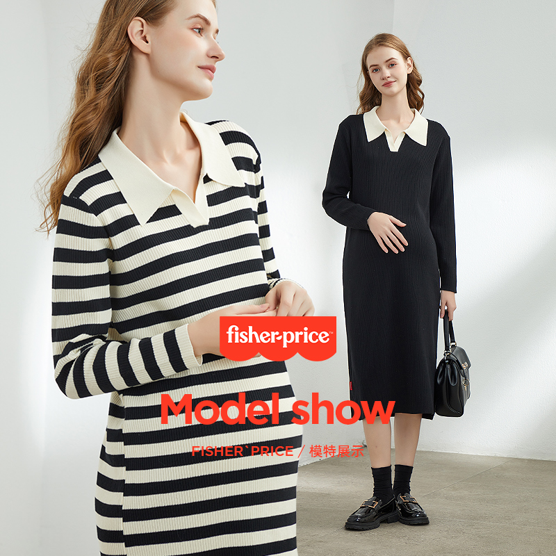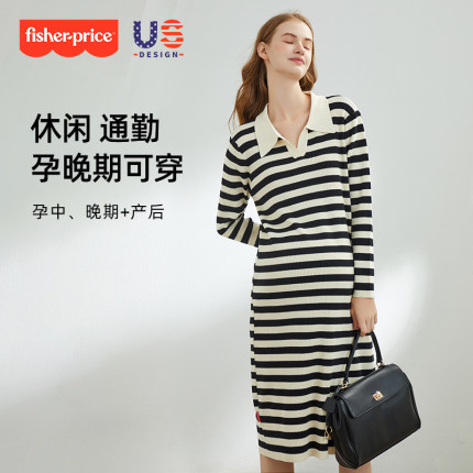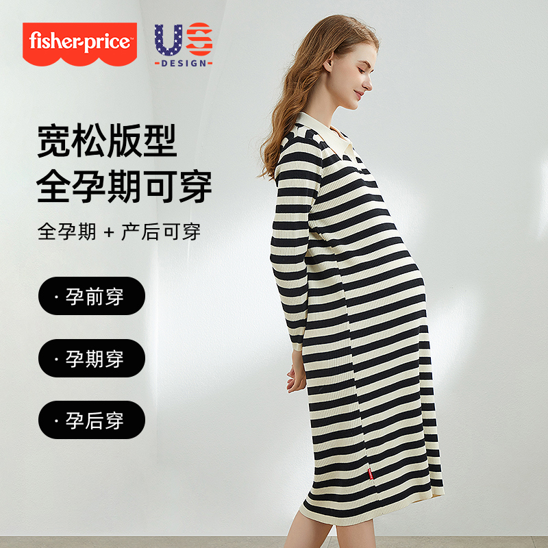 美国费雪孕妇春秋毛衣条纹连衣裙