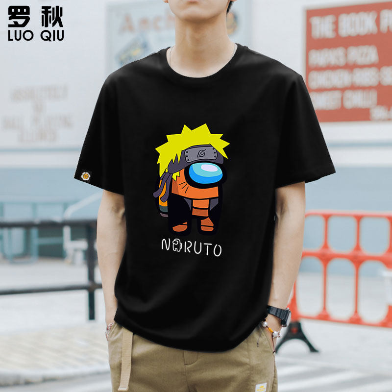 Among us火影忍者联名太空狼人杀游戏纯棉短袖t恤衫男女学生半袖