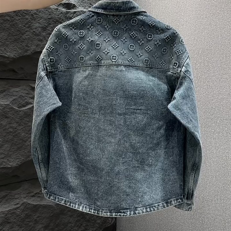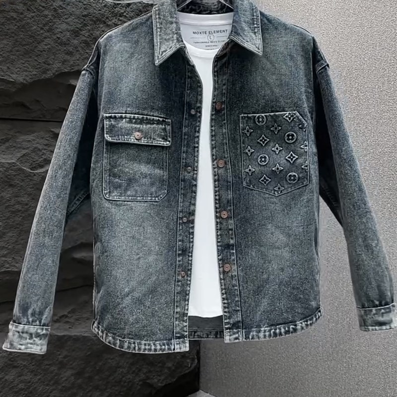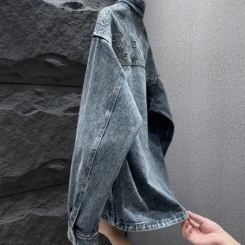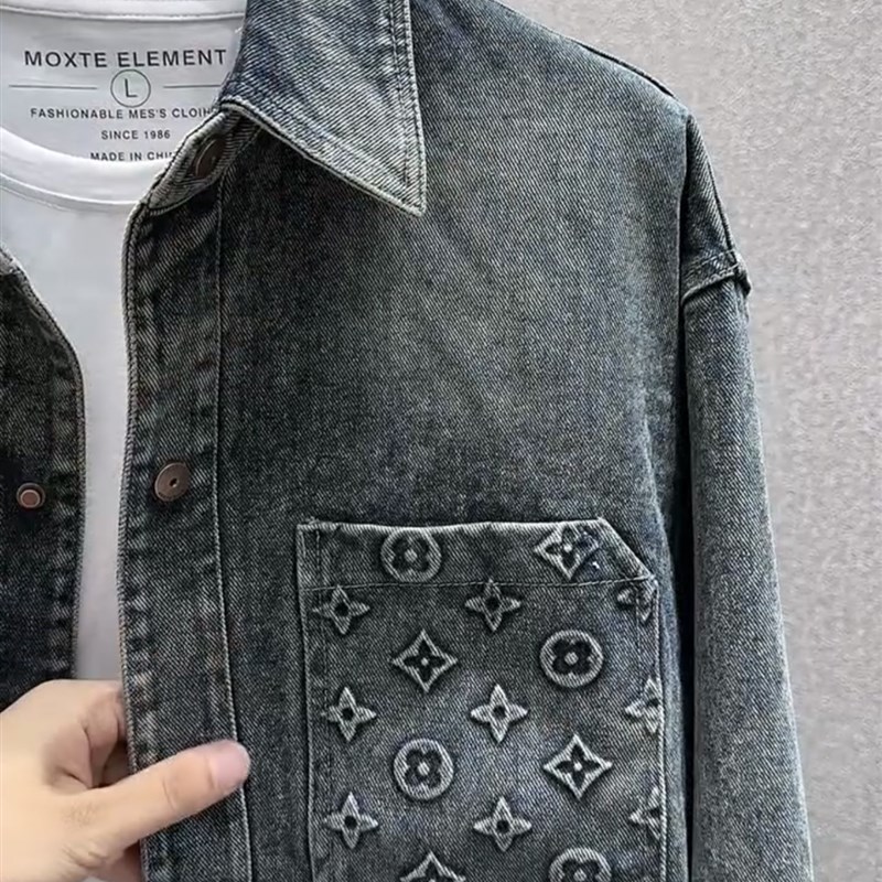 男装2024新款翻领夹克男潮流水洗渐变色牛仔衬衣外套宽松春秋上衣