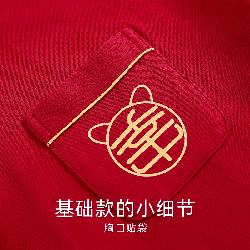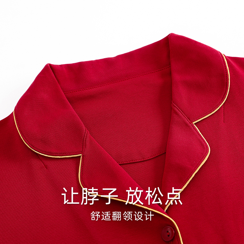芬腾可安夏季睡衣女纯棉短袖开衫大红色喜庆女士新婚家居服两件套