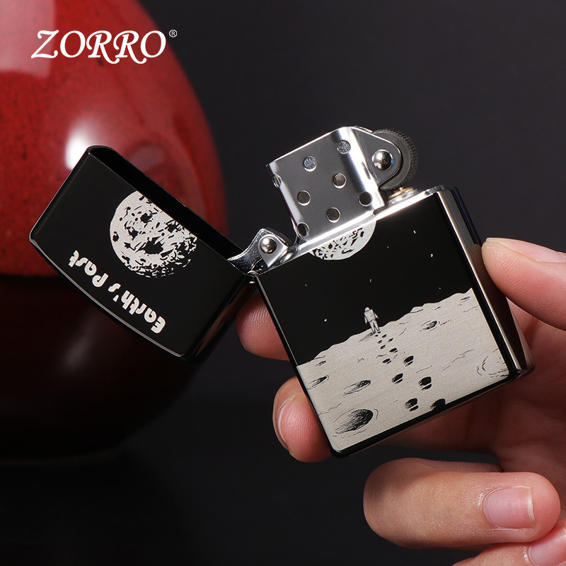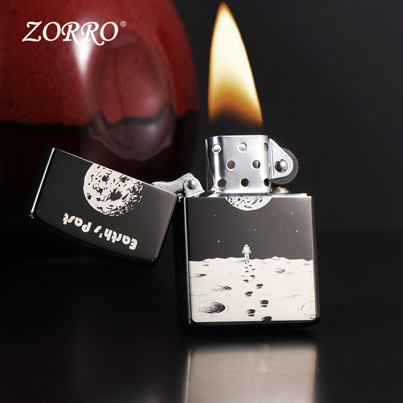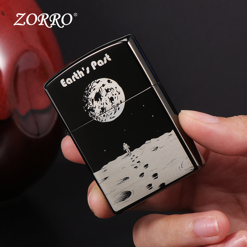ZORRO佐罗正品纯铜砂轮防风煤油打火机定制黑冰宇航员图地球往事