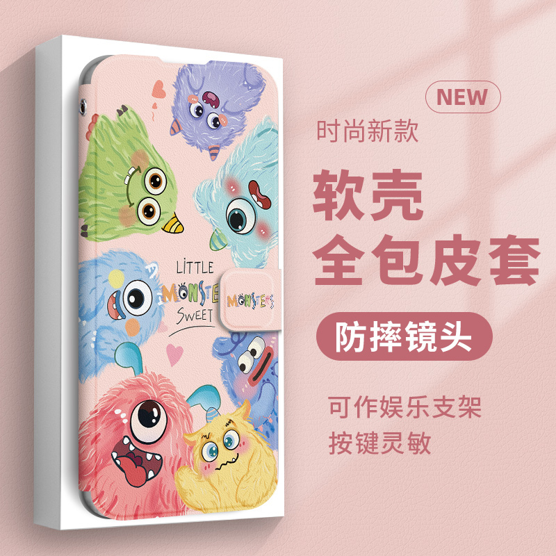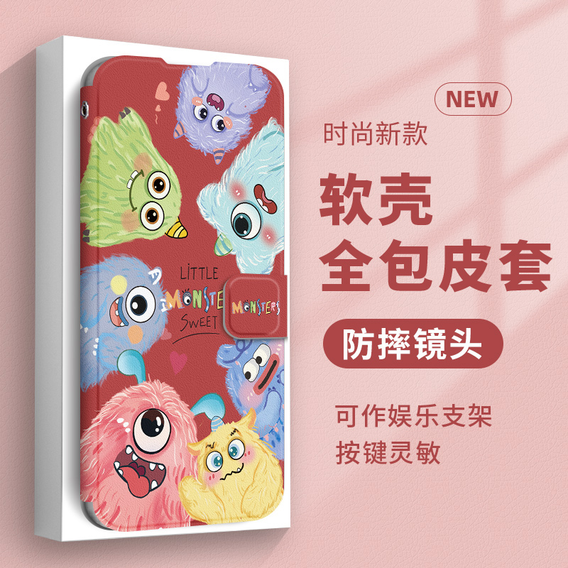 适用苹果13手机壳8plus新款iphone11翻盖15pro女款12/11pro保护壳7p防摔皮套6splus外壳XR全包6s挂绳怪兽集合