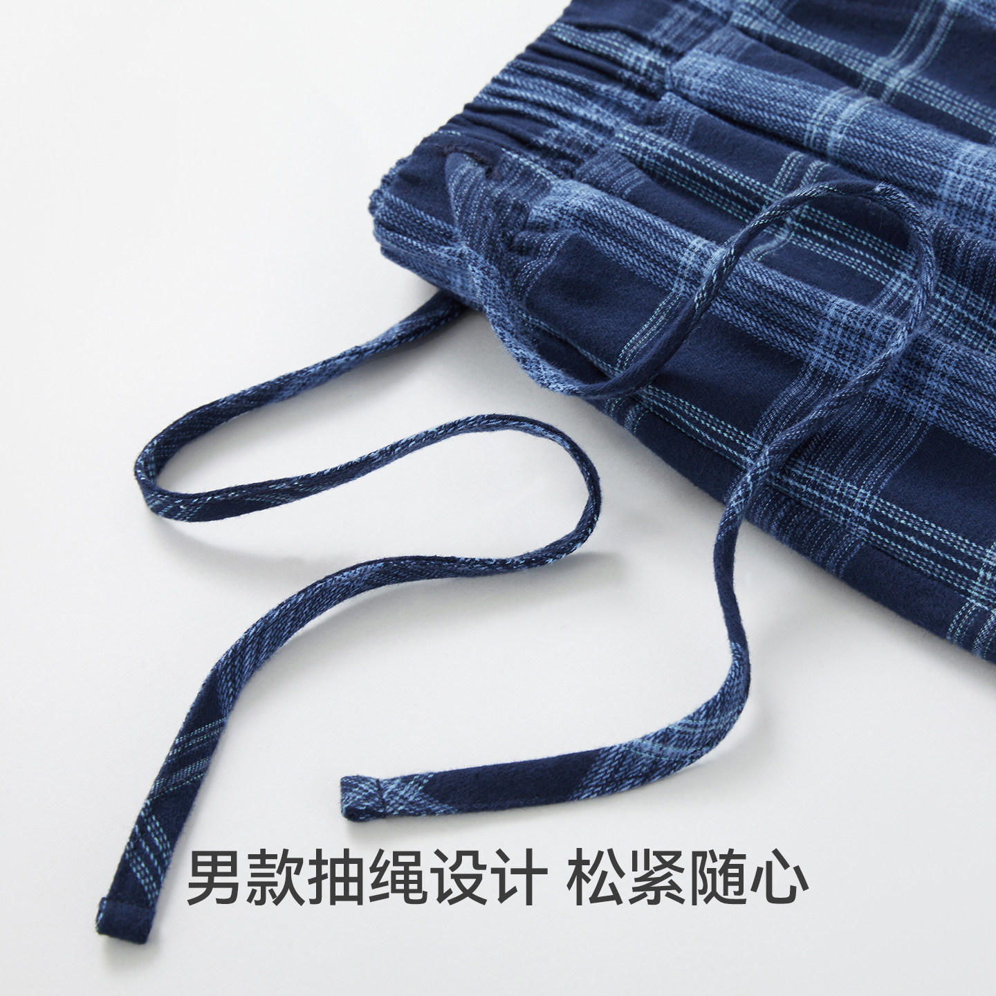 [抗静电]三枪秋冬纯棉磨毛家居服情侣睡裤女长裤格纹男士家居裤