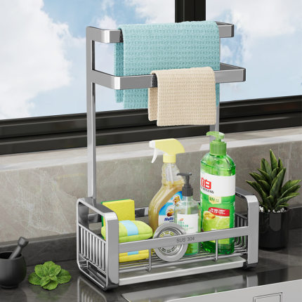 304不锈钢厨房置物架水槽抹布架水龙头水池洗碗钢丝球收纳沥水架